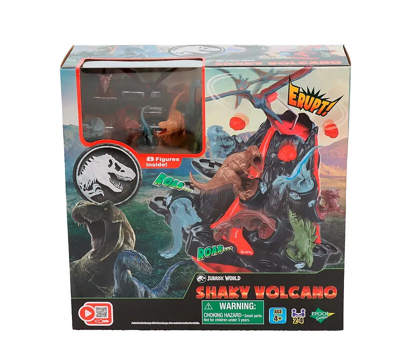 Vorsicht! Gleich bricht der Vulkan aus! Drehe das Glücksrad und platziere dann den Dinosaurier auf dem Vulkan, doch pass auf der Vulkan bewegt sich in alle Richtungen. Für 2 bis 4 Spieler. Ab 4 Jahren.