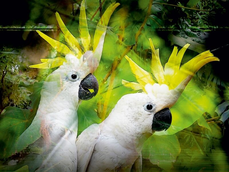 Was für eine Augenweide die bunten Tropenvögel doch sind. Grafisch überarbeitet bieten dieses Foto Freude für lange Zeit.