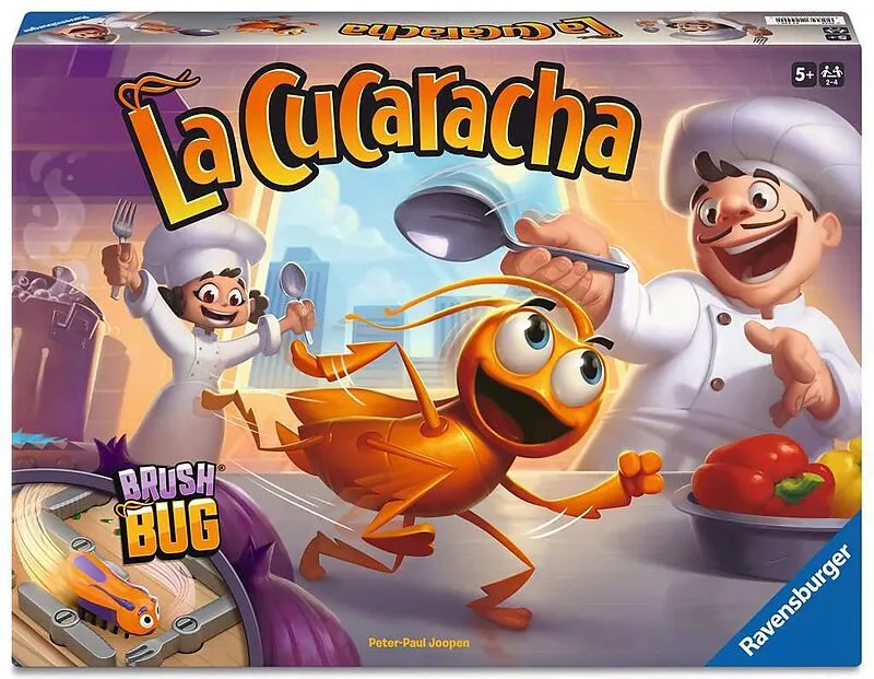 Flink saust die Kakerlake durch die Küche! Jetzt heißt es, keine Zeit zu verlieren. Wer kann sich das herumwuselnde Insekt mit Hilfe des ausliegenden Bestecks schnappen Der Würfel entscheidet, ob Gabel, Messer oder Löffel gedreht werden. Wird das Besteck gesch...
