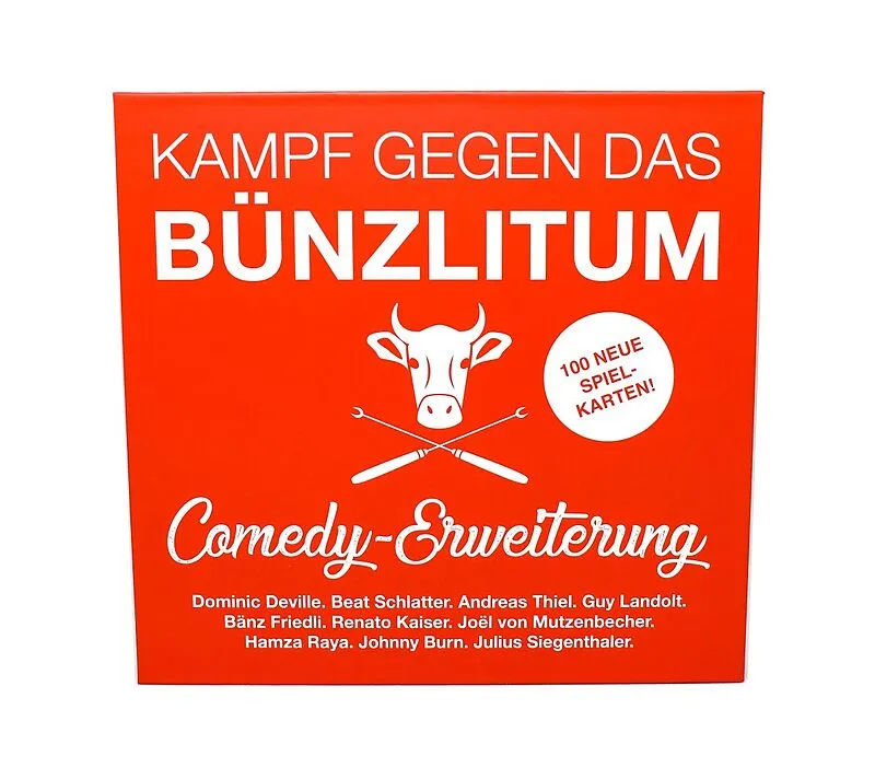 Kampf gegen das Bünzlitum Kartenspiel Comedy Erweiterungsset. Erweiterung zu Kampf gegen das Bünzlitum. Für das Comedy-Erweiterungsset zum Spiel «Kampf gegen das Bünzlitum» haben zehn grossartige Schweizer Comedians je zehn neue Karten verfasst. Jede Karte kom...