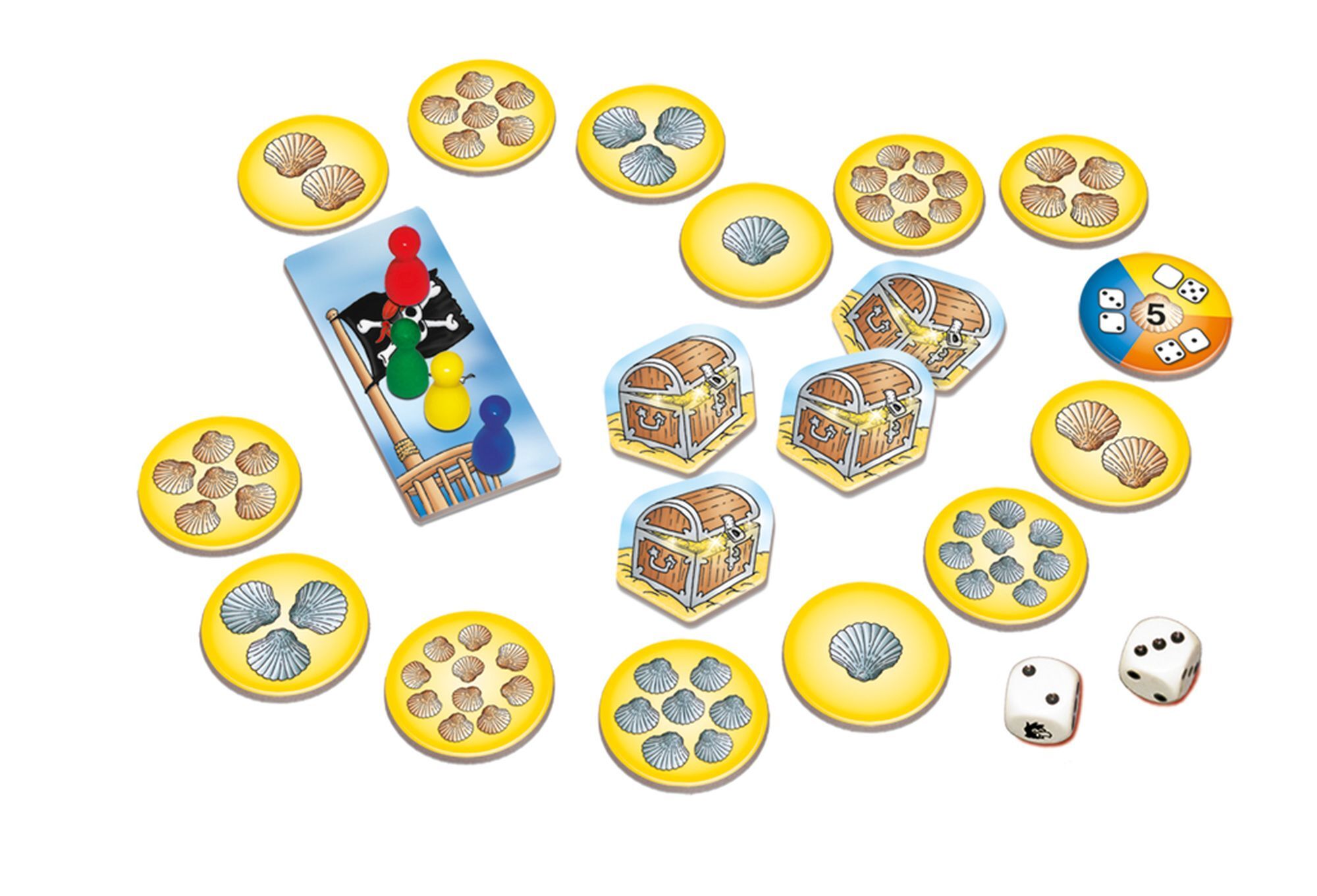 Ahoi! Die Piraten haben fette Beute gemacht! Jetzt wartet eine spannende Schatzsuche. Wer ist der schnellste Pirat und schnappt sich den größten Teil vom Piratenschatz? Dafür müssen die Würfelaugen richtig zusammengezählt werden. Danach zieht der Pirat auf das...