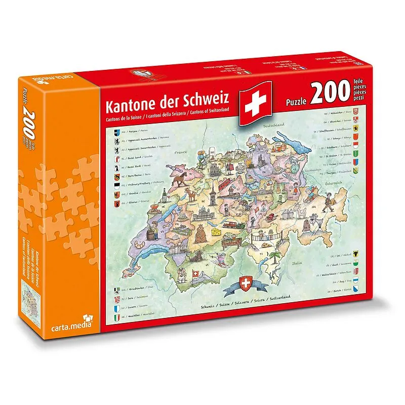 Entdecke spielerisch die Schweiz mit Ihren 26 Kantonen und einigen wichtigen Sehenswürdigkeiten oder Bräuchen. Mit diesem Puzzle kannst Du mühelos die Kantone, Wappen, Autokennzeichen und Hauptorte lernen.