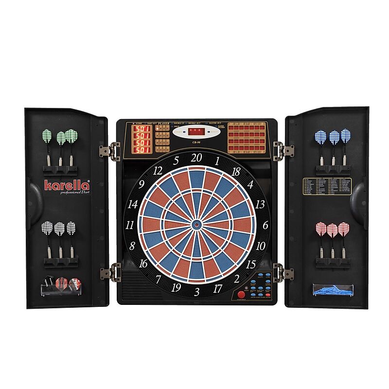 Der Verkaufsschlager unter den Karella Dartautomaten. Der CB-90 ist eine E-Dartscheibe in einem eleganten, schließbaren Cabinet. Sie verfügt über exakte Turniermaße, Doppelbullseye und den rot/blauen 2-Loch Segmenten, die jeder Spieler aus dem professionellen ...