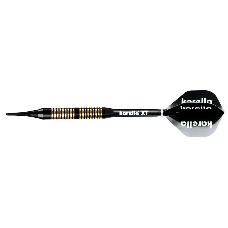 Die Karella XT-Serie als Steel- und Softdart verbindet Design und Qualität bei einem unschlagbaren Preis-Leistungs-Verhältnis. Der Karella XT-6 Soft sorgt mit seiner eleganten Erscheinung für Aufsehen am Board. Der hochwertig beschichtete schwarz- und goldfarb...