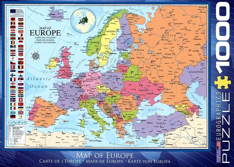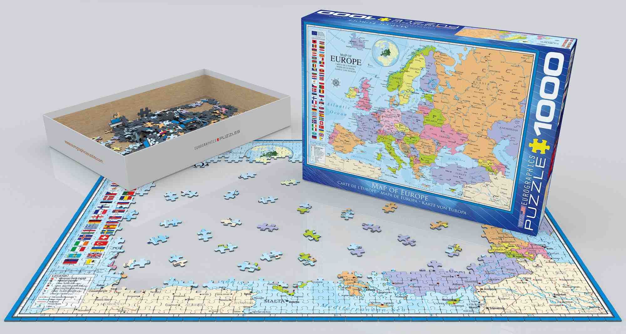 Karte von Europa Smart-Cut Technology ist ein innovativer Herstellungsprozess, der das Stanzen von einzigartigen Puzzleteilformen mit perfekter Passgenauigkeit erlaubt. Wie bei Schneeflocken gibt es keine zwei Stücke, die gleich sind. Ihr Puzzlehobby wird dadu...