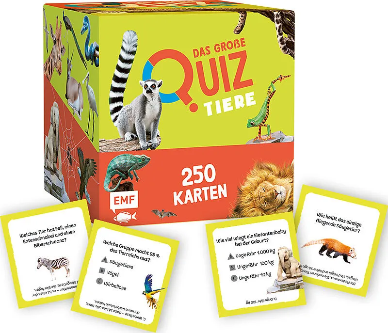 Das große Quiz der Tiere! Teste dein Wissen mit 250 spannenden Fragen und entdecke verblüffende Fakten über die Tiere dieser Welt: Wie heißt das einzige fliegende Säugetier? Welche Tiere gibt es am häufigsten auf der Welt? Und warum bewegen sich Ameisen immer...