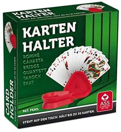 Kartenhalter aus Kunststoff in FaltschachtelDieser praktische Helfer für viele Spielsituationen erleichtert Ihnen den Vorgang des mühsamen Kartenhaltens: Alle Standardkartengrößen für Romm, Canasta, Bridge, Poker, Skat und Quartette passen hinein. So macht Kar...