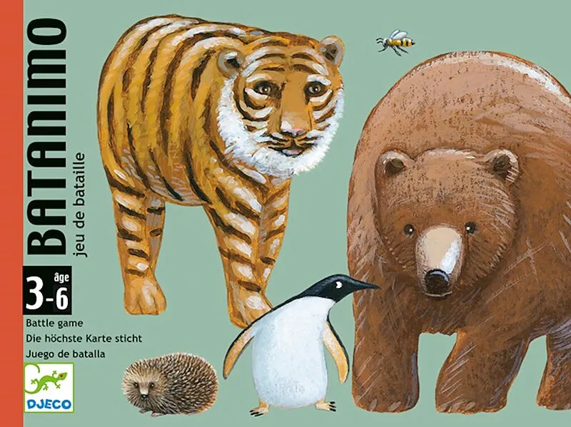 ab 3-6 Jahren 36 Karten 2-4 Spieler extra kurze Spieldauer von 10 min. Kartenspiel mit Stichen: Je grösser und starker Euer Tier ist je grösser ist die Chance das Ihr das Paar gewinnt. Wenn Eure Tiere gleich stark oder gross sind gibt es ein Stechen. Natürlich...