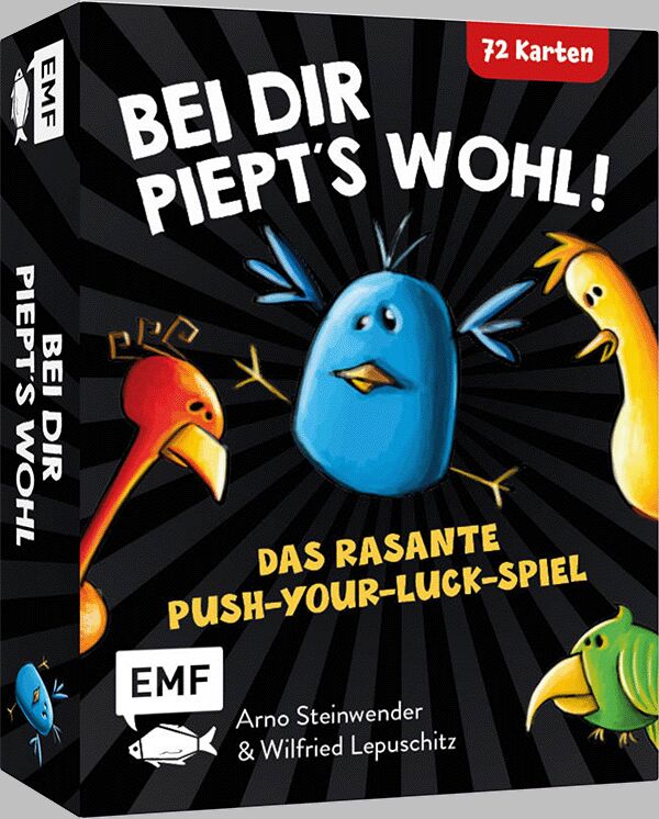 Bereit für ein vogelfieses Push-your-luck-Spiel, bei dem ihr euch gegenseitig den Vogel zeigt? Bei diesem verrückten Spiel zieht ihr Karten vom Stapel und legt sie verdeckt oder offen an die Kartenreihe an. Wer richtig erkennt, ob schon zu viele Vögel in der ...