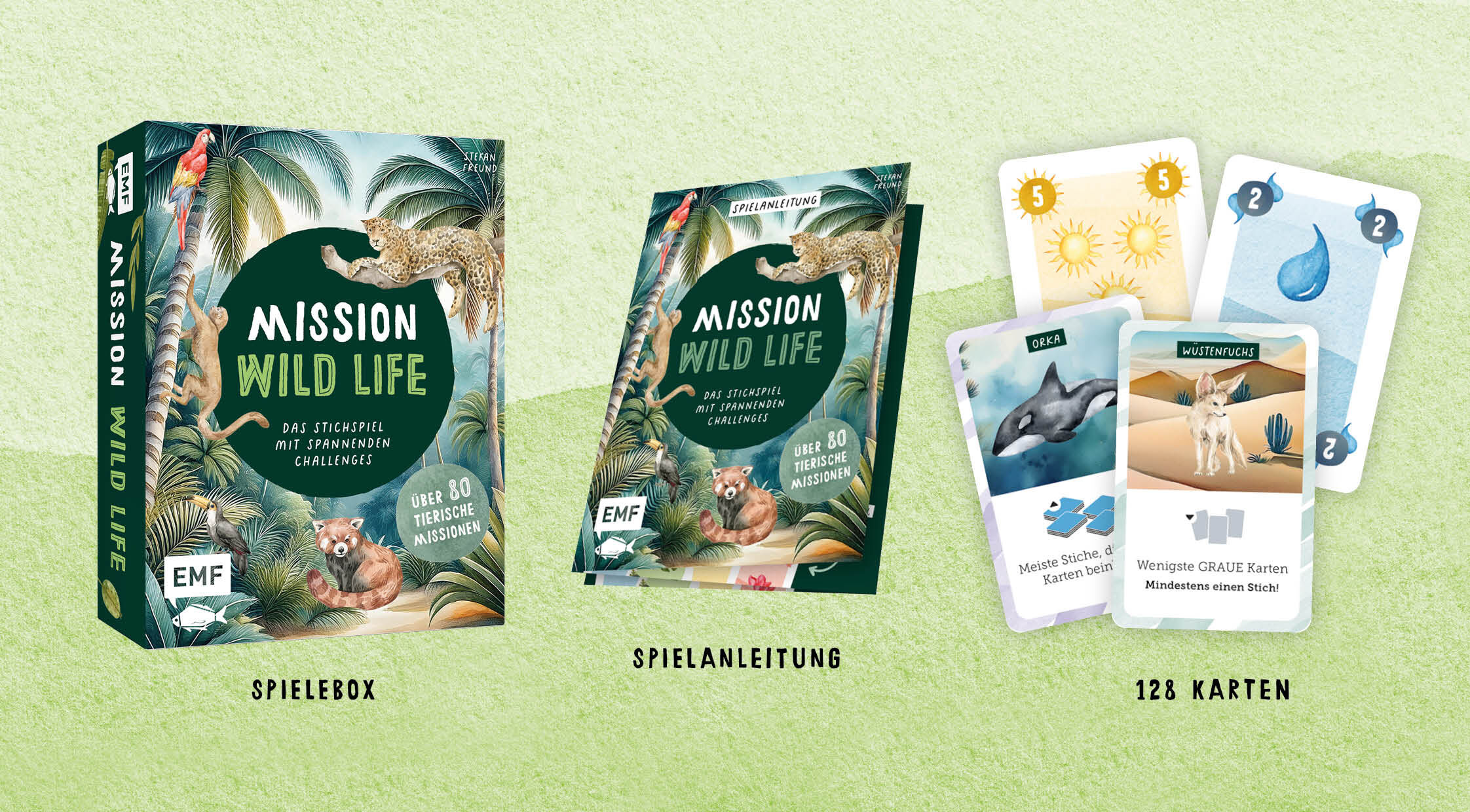 Mission: Wild Life - das Stichspiel mit spannenden Challenges Los geht es auf aufregende Missionen! Bei diesem Stichspiel dreht sich alles um wilde Tiere. Sie brauchen bestimmte Bedingungen, um sich wohlzufühlen. Im spannenden Wettstreit eifert ihr mithilfe v...