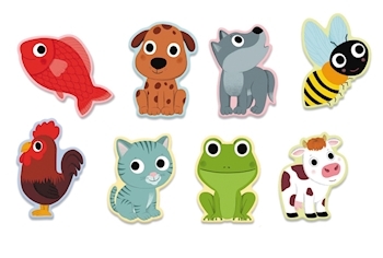 ab 2.5-5 Jahren 22 Karten extra kurze Spieldauer von 5min. Deine Mitspieler müssen erraten welche Tierkarte du gezogen hast, indem du das aufgezeigte Tier mit Bewegungen und Geräuschen nachspielst.