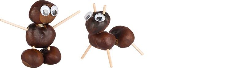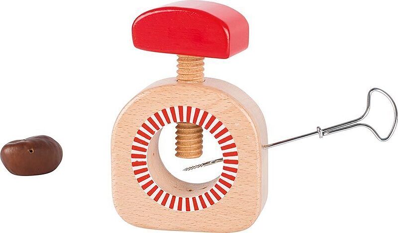 Noch nie war mit Kastanien basteln so leicht! Einfach die Kastanie festschrauben und schon kann drauf los gebohrt werden.