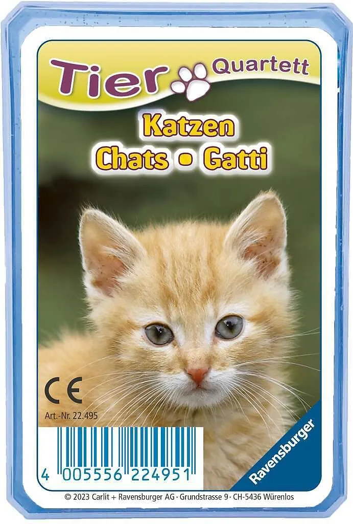 Ein klassisches Quartettspiel rund um die süßen Katzen: Zu den einzelnen auf den Karten abgebildeten Tieren ist jeweils eine Wissensfrage mit 3 Antwortmöglichkeiten aufgedruckt