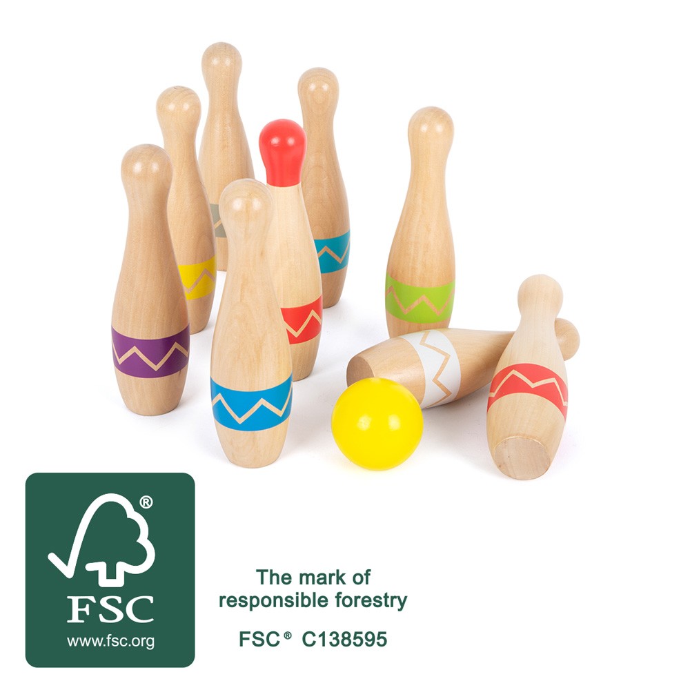 Wer wirft alle Neune? Dieses Kegel-Set aus FSC® 100%-zertifiziertem Holz bringt das gemeinsame Spiel zwischen Klein und Groß ins Rollen! Die neun Massivholz-Kegel im modernen "Active"-Design besitzen ebenso wie die beiden Holzkugeln eine für Kinder h...