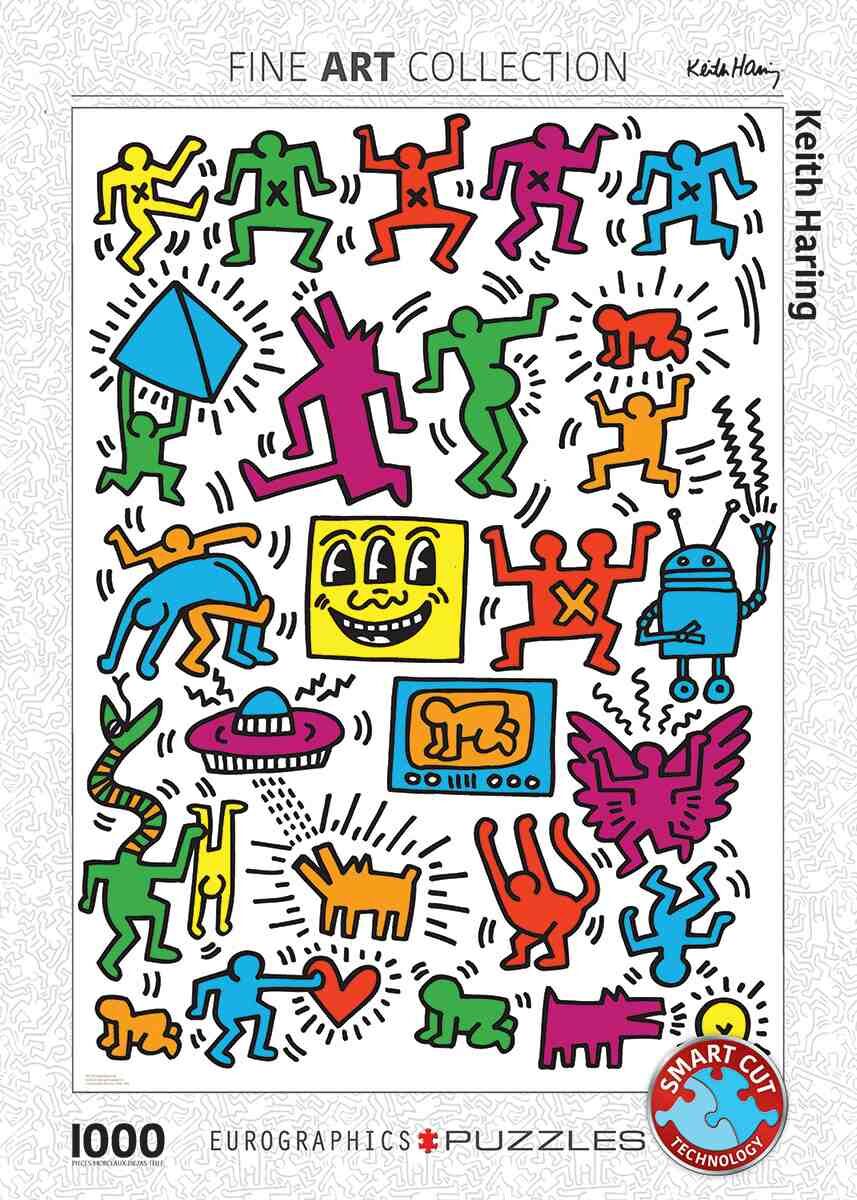 Keith Haring Collage Smart-Cut Technology ist ein innovativer Herstellungsprozess, der das Stanzen von einzigartigen Puzzleteilformen mit perfekter Passgenauigkeit erlaubt. Wie bei Schneeflocken gibt es keine zwei Stücke, die gleich sind. Ihr Puzzlehobby wird ...