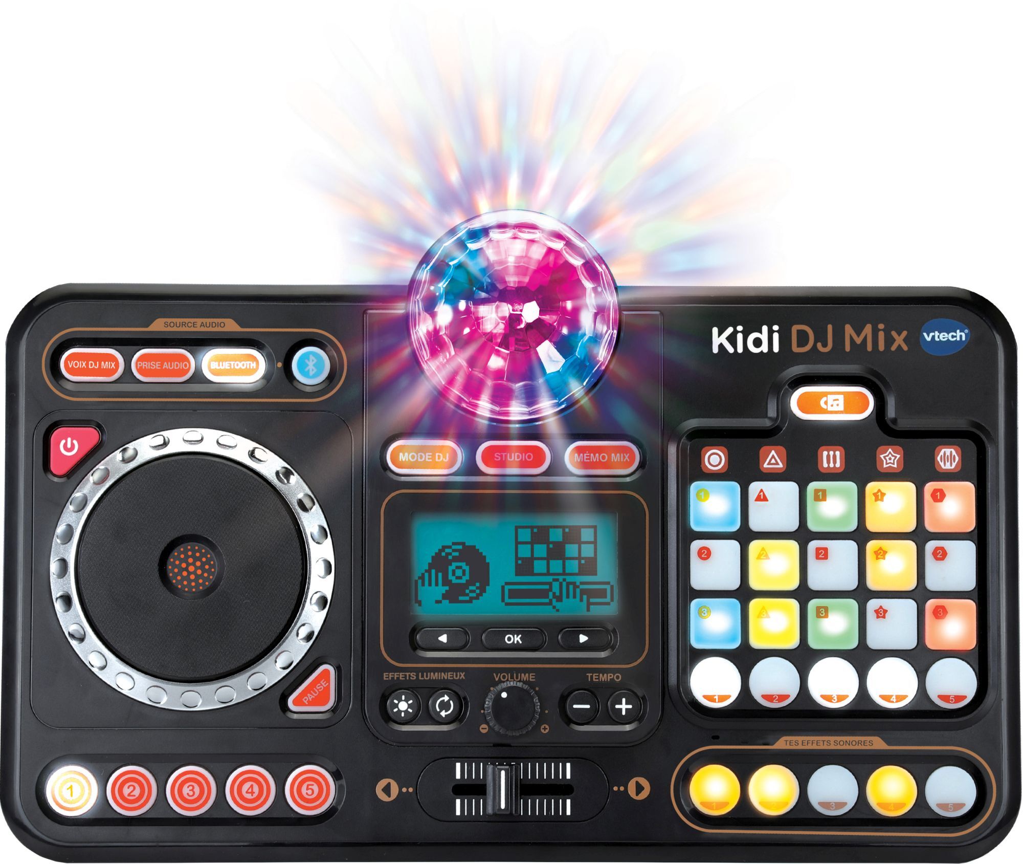 Vtech 80-547304 Kidi DJ Mix Mit dem 10-in-1 Kidi DJ Mix zum Superstar werden! DJ-Pult mit Jog-Wheel, LED-Launchpad, Crossfader, eingebautem Mikrofon und Display: Zum DJ oder zur DJane werden, selbst Musik mischen, Geräuscheffekte zur Musik hinzufügen und zu de...