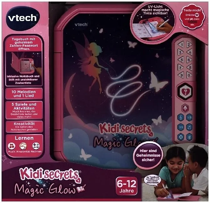 Kidisecrets Magic Glow Geheimnisvolles Tagebuch mit magischem Stift, dessen Tinte nur unter der Zauberlampe sichtbar wird. Zauberstift mit unsichtbarer Tinte und 30-seitiges DIN-A6-Notizbuch inklusive. Die Tinte des Zauberstifts wird unter der aufklappbaren UV...