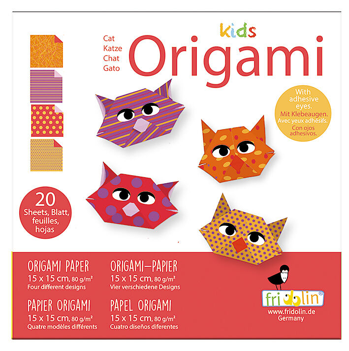 Origami-Modell: Katze Mit lustigen Aufklebern (je nach Modell) 4 verschiedene Papier-Designs Traditionelle Faltaufgabe zur Förderung von Konzentration und Fingerfertigkeit