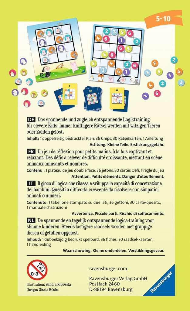 Das spannende und zugleich entspannende Logiktraining für einen Spieler ab 5 Jahren. Zu Beginn werden 4x4 Sudokus gelöst, nach und nach die immer kniffligeren 6x6 Sudokus. Die Vorderseite der Rätselkarte gibt die Startpositionen vor und auf der Rückseite darf ...