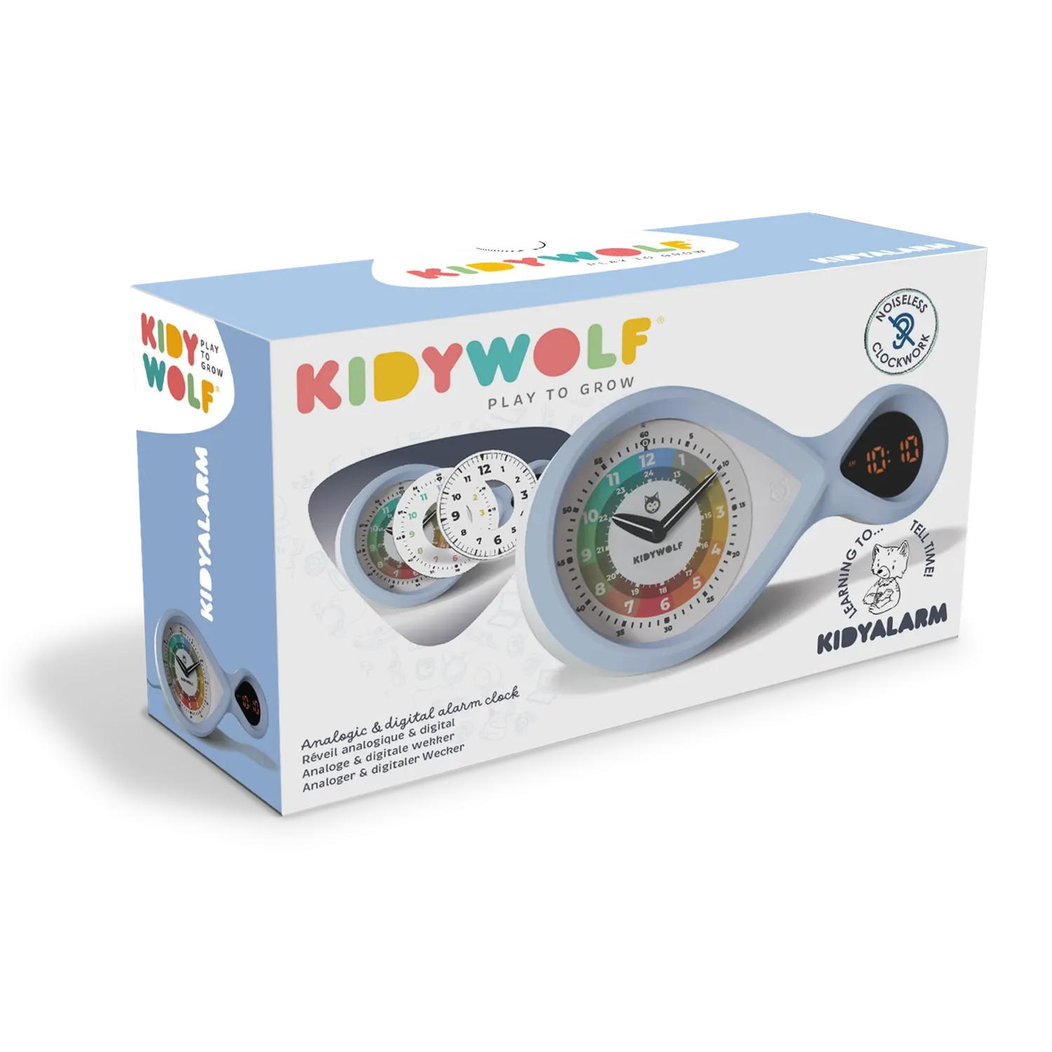 Der Wecker, der die Lesbarkeit eines Zeigerzifferblatts mit der Zweckmässigkeit einer digitalen Anzeige verbindet. Das Kind wird so mit einem Lernobjekt aufwachsen, mit dem es die Uhrzeit lesen lernen kann, und wenn es älter wird, wird es eine doppelte Anzeige...