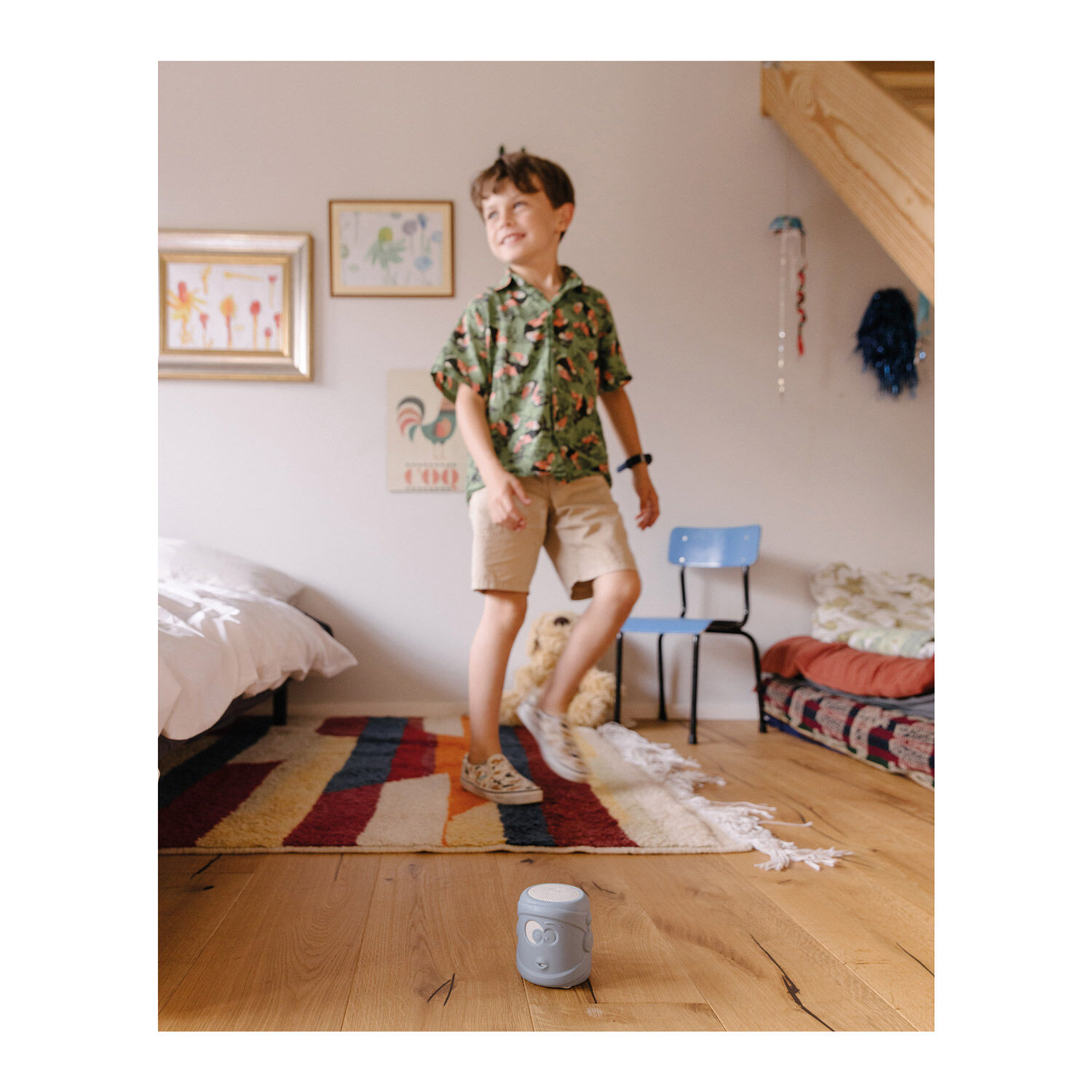 Dieser Lautsprecher, speziell für Kinder konzipiert, ist mit den meisten Musikspielern kompatibel und besteht aus recyceltem Kunststoff, umhüllt von einem Silikonschutz.