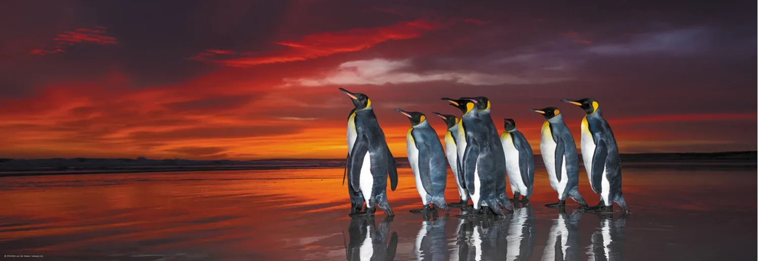 Auf den Falklands ist Wim van den Heever eine phänomenale Momentaufnahme von Königspinguinen gelungen, die sich vor der täglichen Futtersuche versammeln. Gelegte Größe: 94,5x32,6cm.
