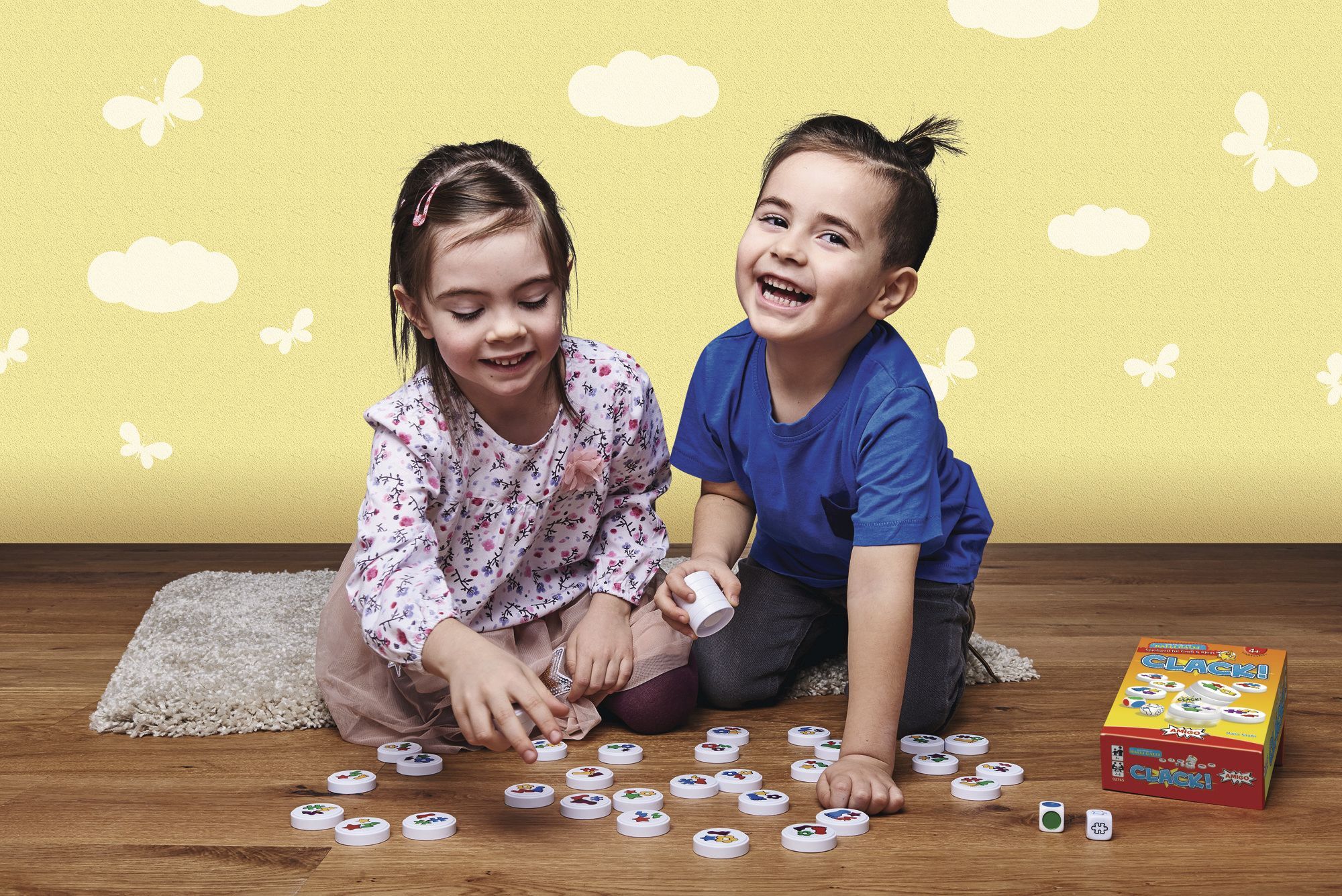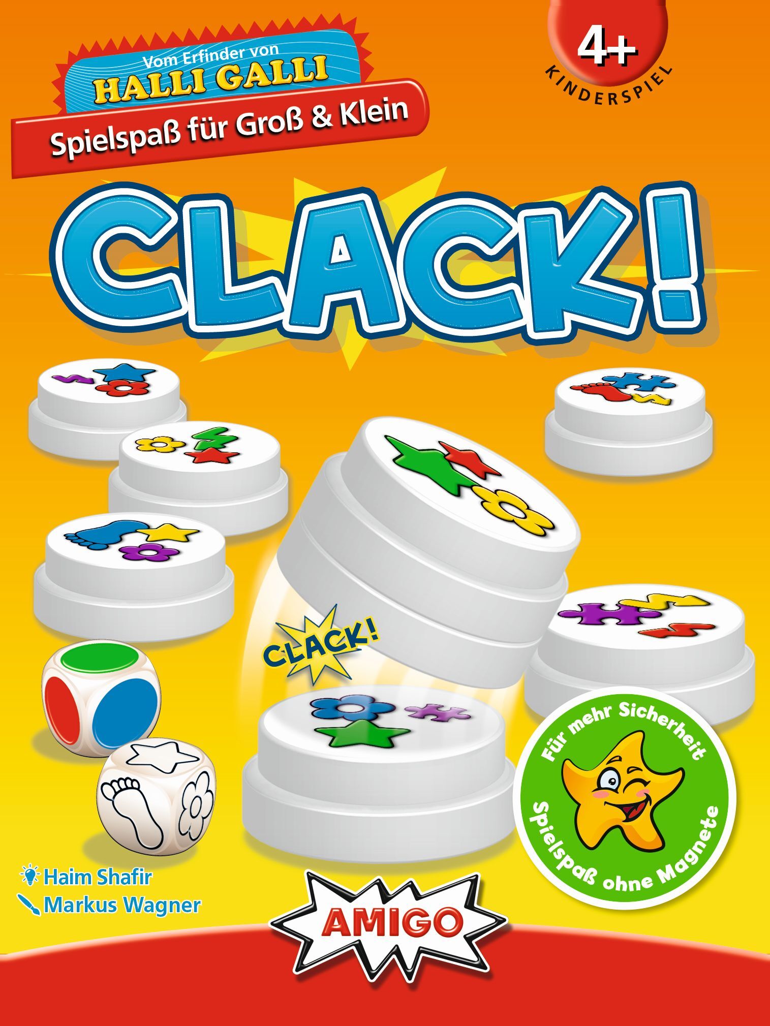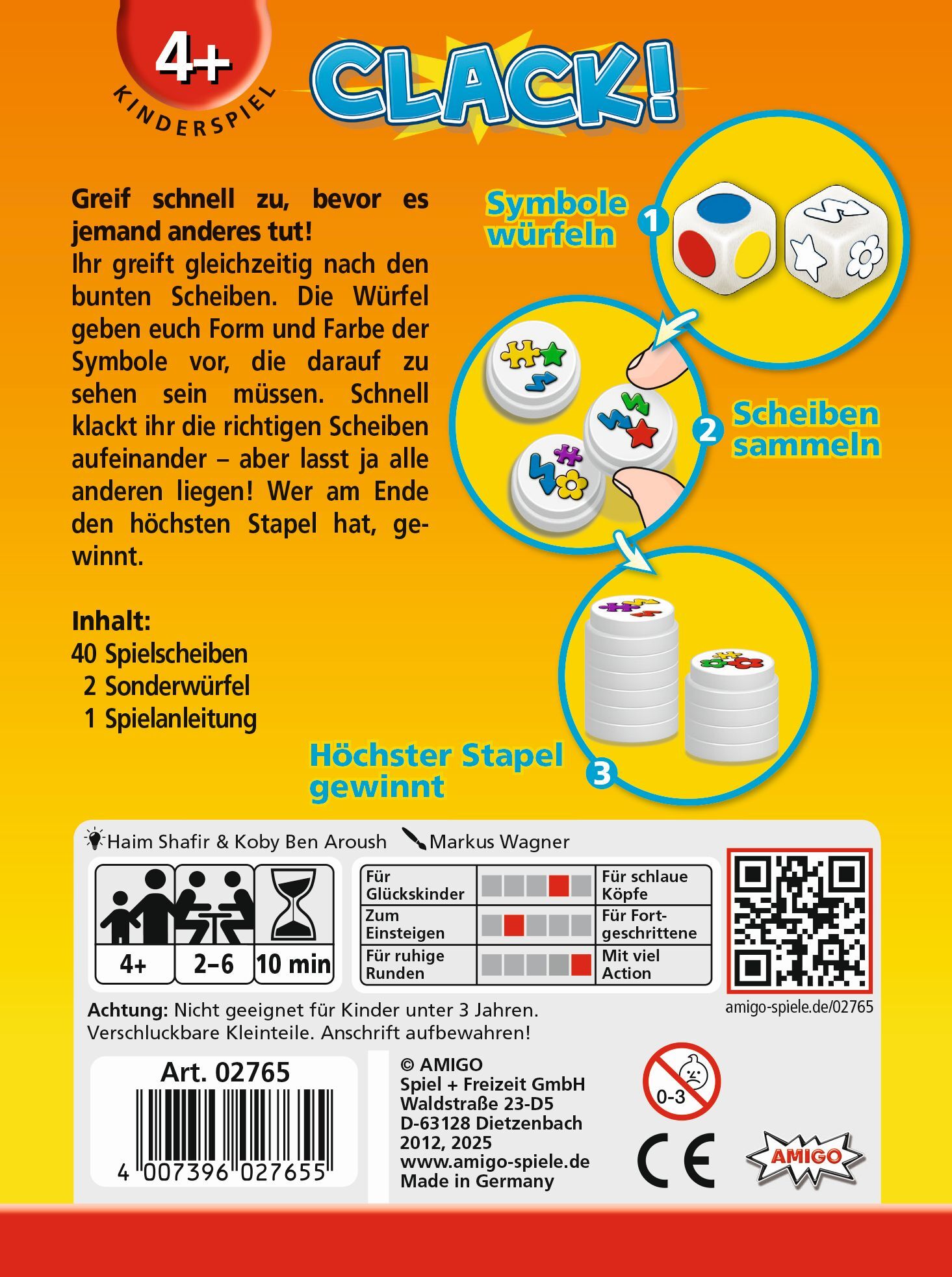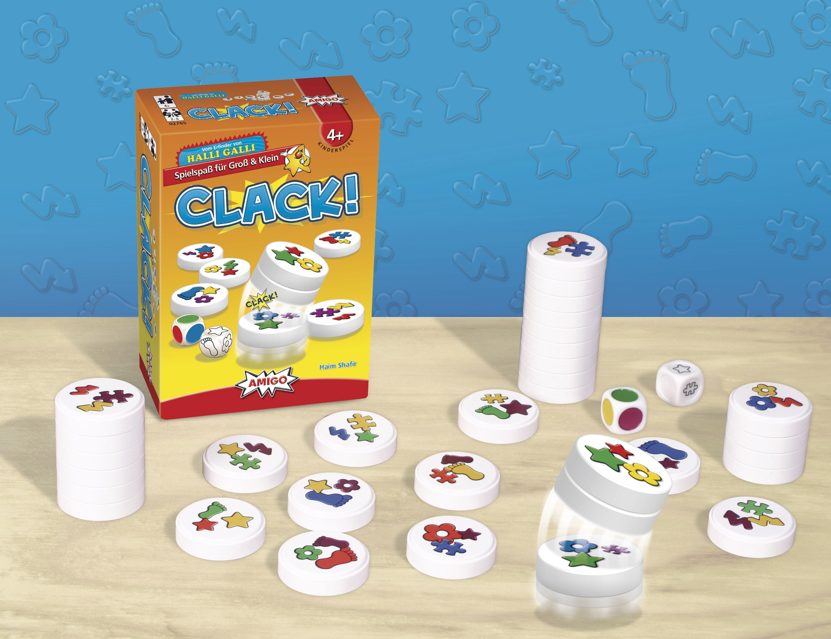 Clack! Clack! Refresh MBE3 Bei Clack! spielen immer alle Spielenden gleichzeitig: Es wird gewürfelt und schon greifen alle nach den bunten Scheiben. Denn die Würfel geben Form und Farbe der Symbole vor, die auf den Scheiben zu sehen sein müssen. Schnell werden...