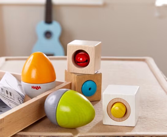Egal ob Musikei oder Klangstein: Mit diesen besonderen Instrumenten ist Geräusch-Action garantiert. Die Bausteine und Eier aus robustem Holz rasseln, klappern, zwitschern oder klingeln und sorgen so für viele spannende akustischen Effekte und ersten Rhythmik-S...