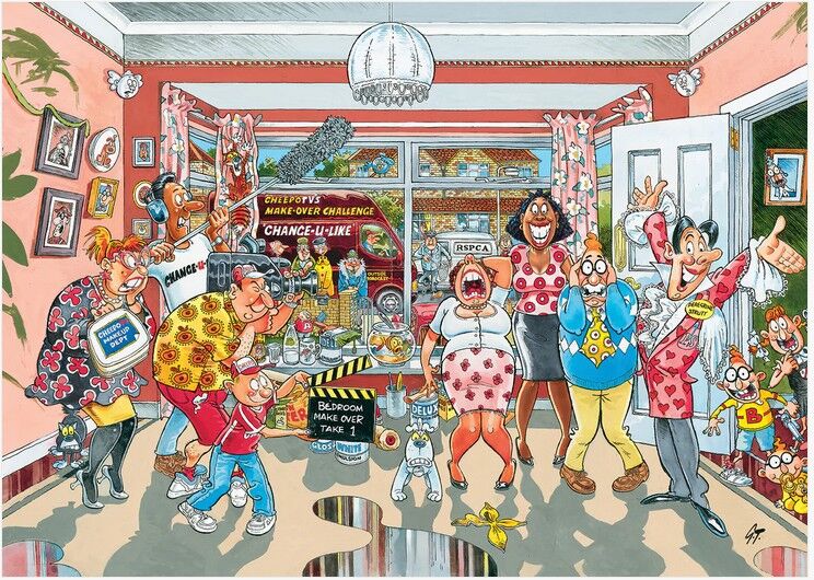 Puzzlemaße: 68 x 49 cm Inhalt: 1x Puzzle, 1x Lösungshinweis Ja, da strahlt der verrückte Künstler beim Betrachten seines vollbrachten Werkes! Diese Begeisterung teilen allerdings nicht alle Personen im Raum denn was lässt das Ehepaar in seinem Schlafzimmer so ...