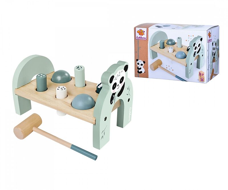 Eichhorn Klopfbank: Die sechs verschieden farbenen Stifte und Kugeln müssen mit dem Hammer durch die Löcher der 23x12,5x14,5cm großen Eichhorn Klopfbank geschlagen werden. Die Klopfbank fördert die Motorik und ist für Kinder ab einem Jahr geeignet.