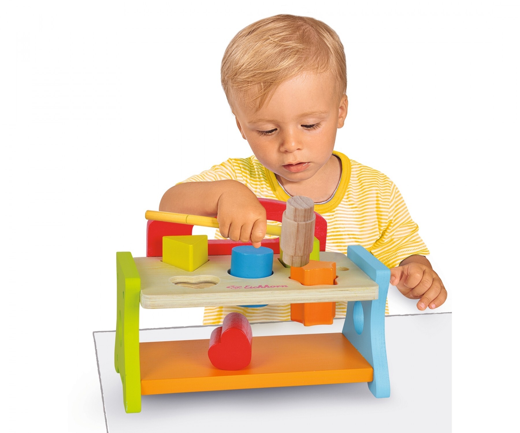 Fördern Sie mit der Eichhorn Hammerbank den Lernprozess für die Wahrnehmung von Farben und Formen der Kleinen und sehen Sie wie sich ihre motorischen Fähigkeiten entwickeln bzw. verbessern. Mit dem Hammer können die einzelnen Formen durch die jeweiligen Löcher...