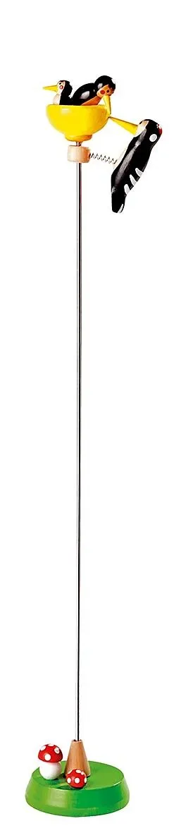 Klopfender Weise findet der Specht seinen Weg nach unten.