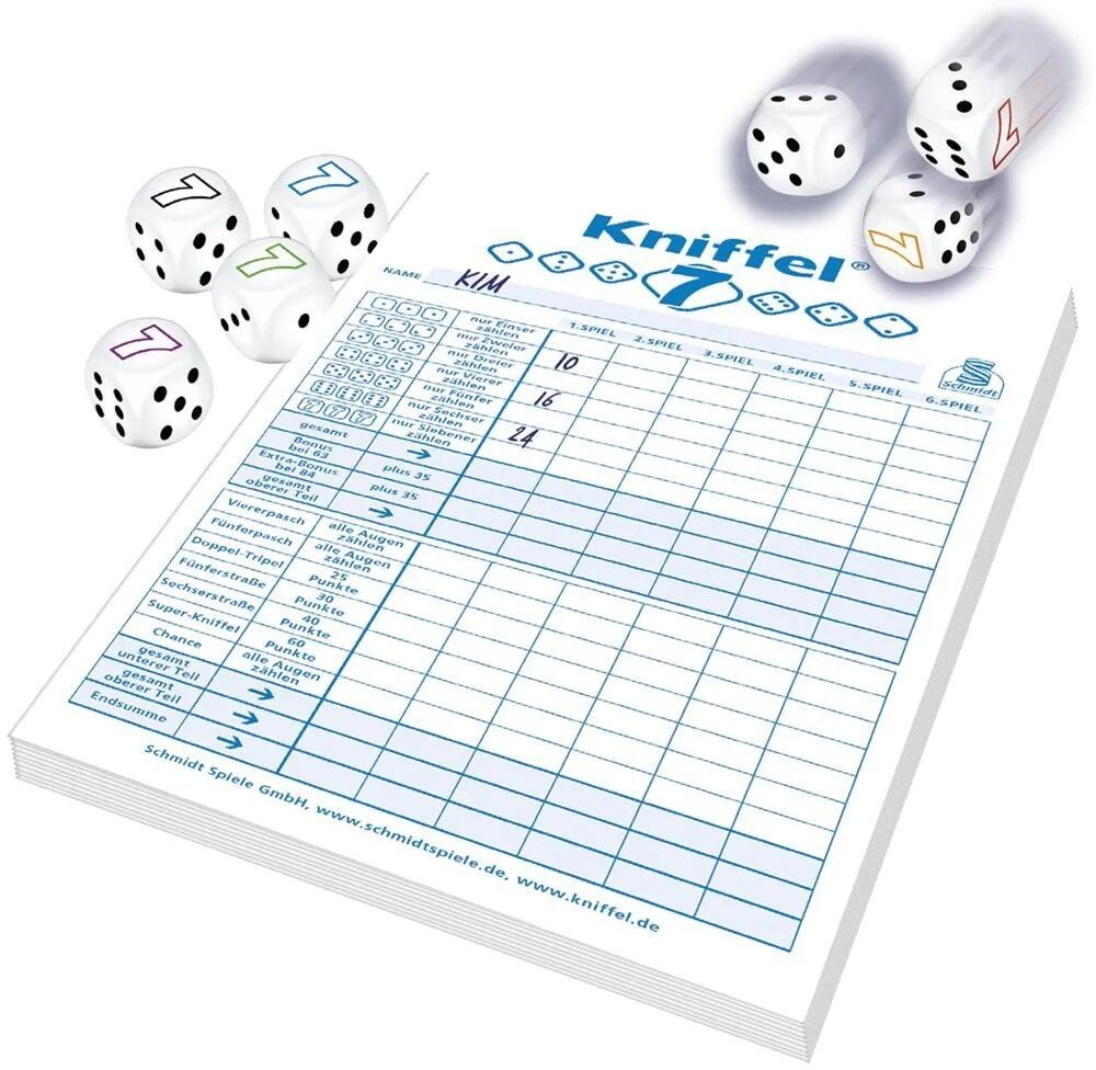 Kniffel 7 Kniffel®7 erweitert den beliebten Würfelklassiker um neue, spannende Elemente. Dabei bleiben die vertrauten Regeln unverändert, sodass gleich losgespielt werden kann. Sieben unterschiedliche Würfel verleihen Kniffel® einen besonderen Reiz und es kann...
