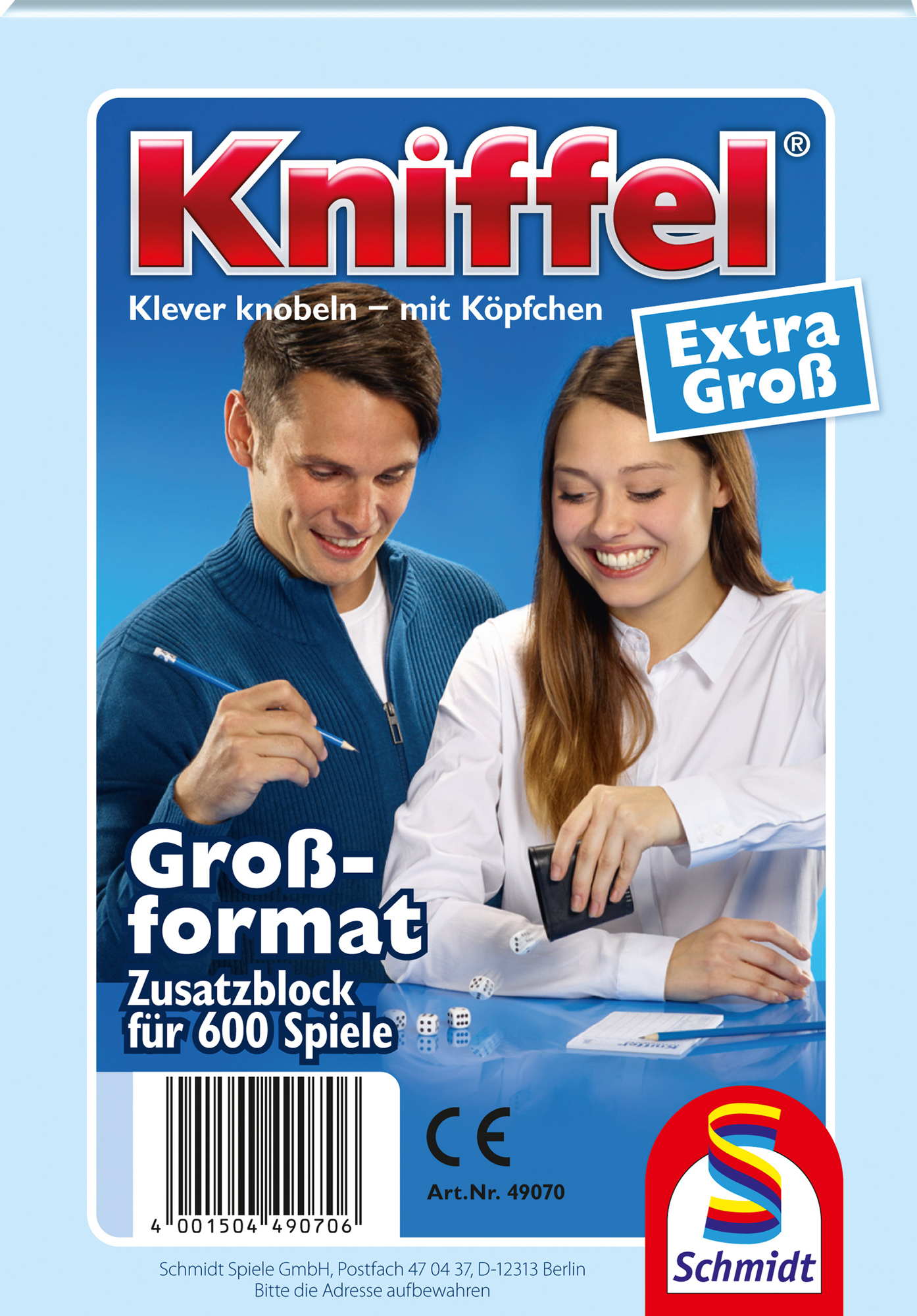 Platz genug für alle, die sich beim Kniffeln austoben wollen: Der KNIFFEL®-Zusatzblock im Großformat hat Platz für 600 großartige Spiele und große Schriften.