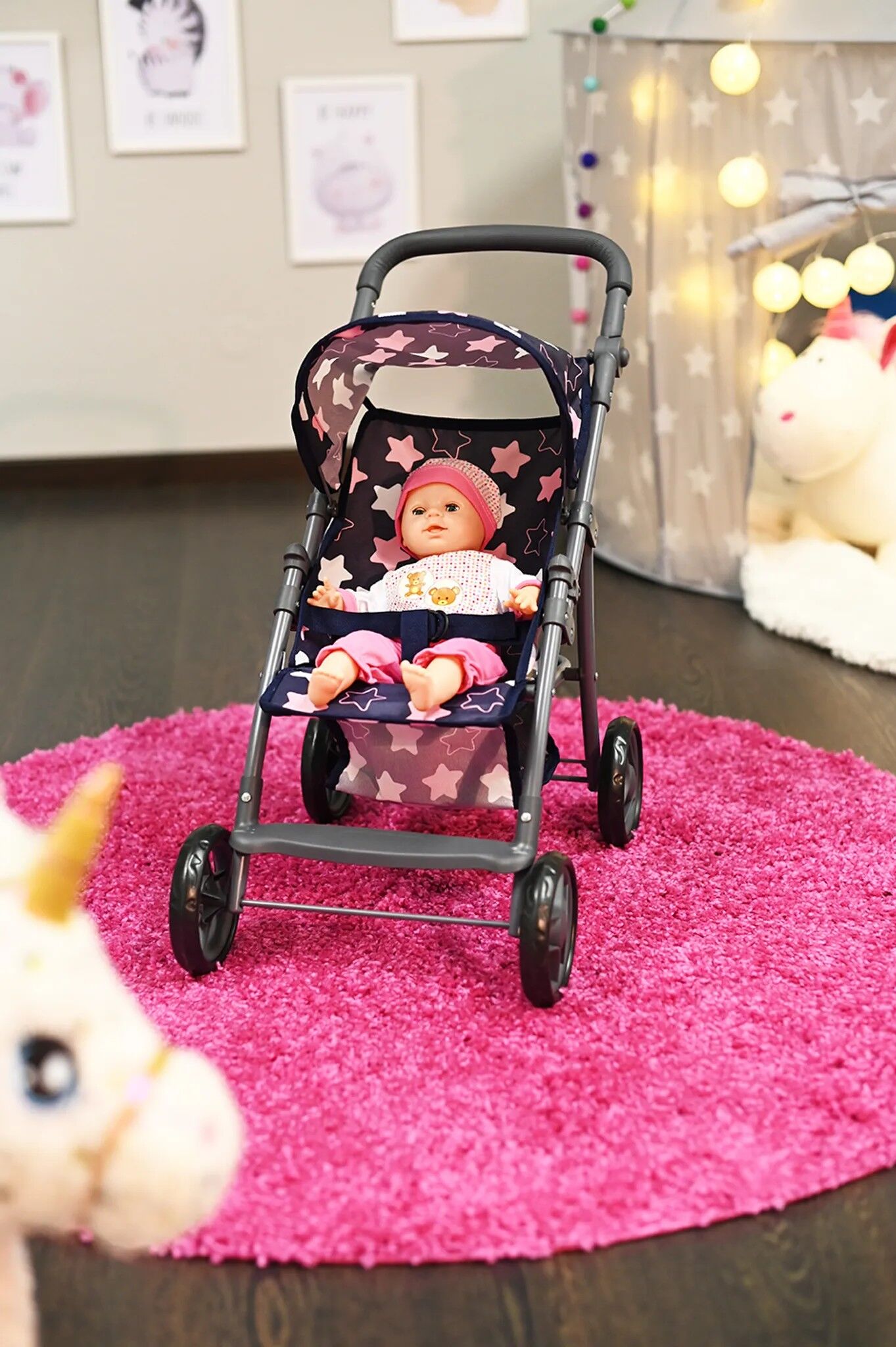 Top moderner und praktischer Puppenbuggy Liba von knorrtoys mit verstellbarem Verdeck. Inklusive Anschnallgurt und Einkaufsnetz. Ein höhenverstellbarer Schieber (ca. 33 - 59 cm) ermöglicht das Mitwachsen des Wagens mit den Puppeneltern. Abmessungen: ca. 54 x 3...