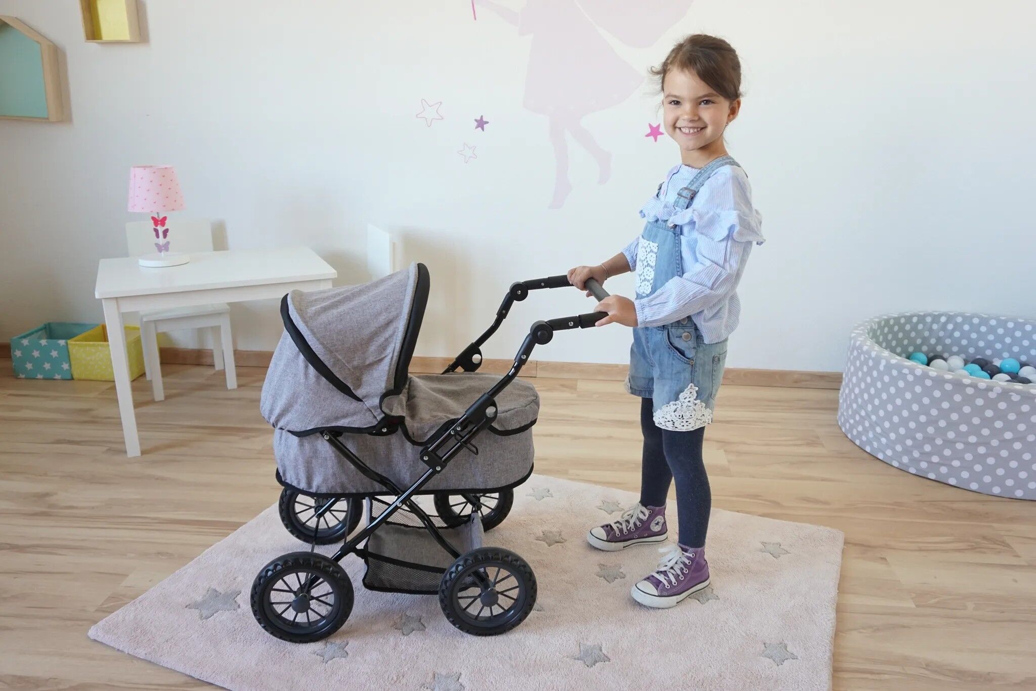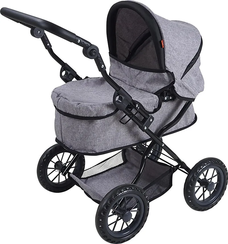 Top moderner Puppenwagen First von knorrtoys mit verstellbarem Verdeck und Einkaufsnetz. Ein höhenverstellbarer Schieber mit Softummantelung (ca. 40 - 66 cm) ermöglicht das Mitwachsen des Wagens mit den Puppeneltern. Durch das einfache Zusammenklappen, wird ei...
