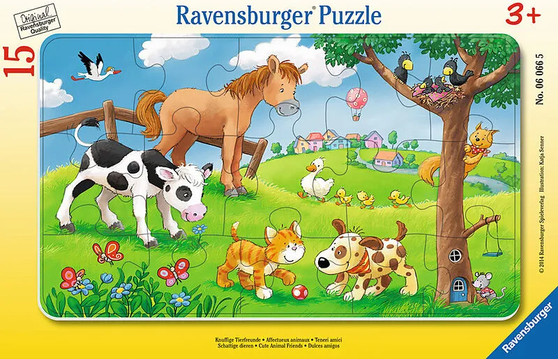 Ravensburger 6066 Puzzle Knuffige Tierfreunde 15 Teile Wohin gehört diese Ecke? Passen diese Puzzleteile zusammen? Rahmenpuzzles sind durch die Anzahl und Größe ihrer Teile ideal für Puzzleanfänger ab 3 Jahren geeignet. Der Puzzlerahmen mit den Konturlinien de...