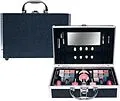 Casuelle Kosmetikkoffer mit blau schwarz glitzernen Oberfläche, 25 x 19 x 7,5 cm, Inhalt: 1 x Spiegel, 2 x Lippenstift