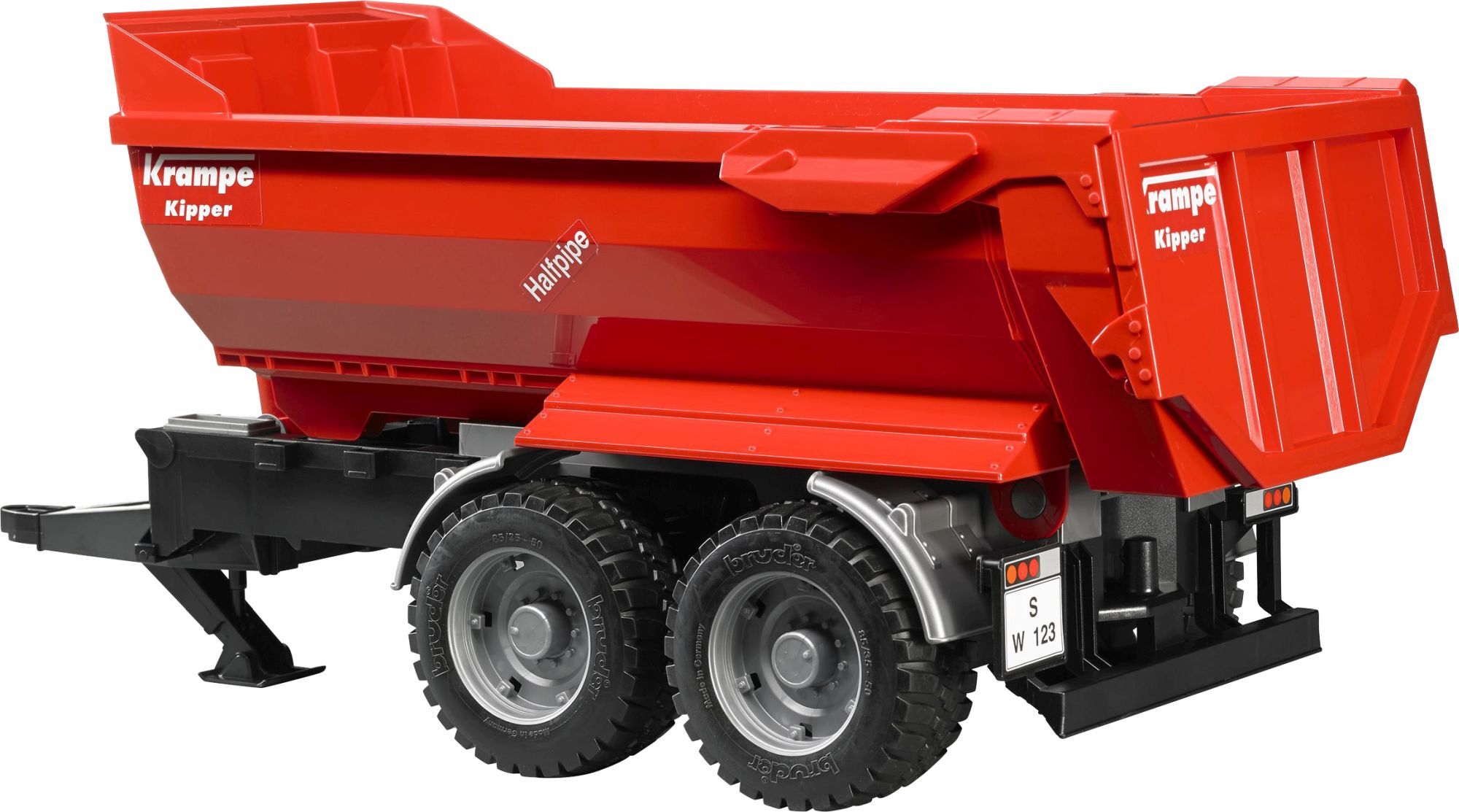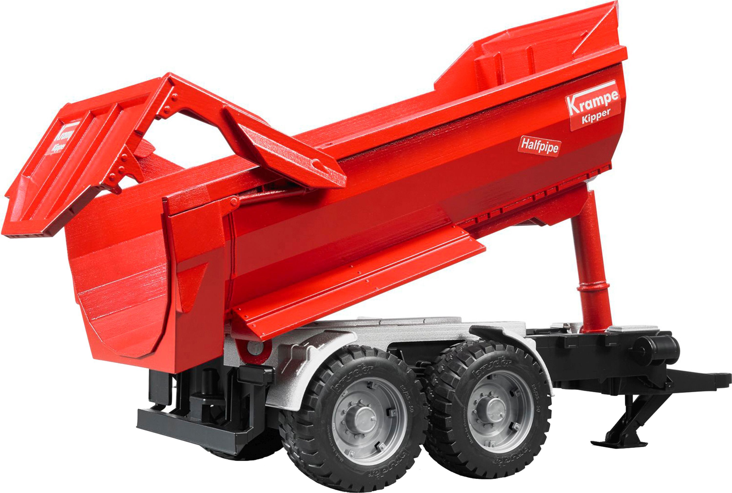 Bruder 02225 Krampe Tandem-Halfpipe-Kippanhänger Halfpipe Kippanhänger werden immer beliebter um effizient Erdbewegungen zu bewältigen. Besonders wenn der Untergrund morastig und schwierig ist, wird einem Gespann aus leistungsstarkem Schlepper mit Halfpipe-Tan...