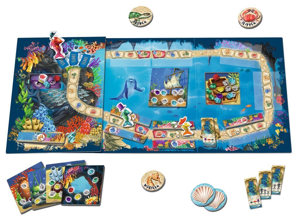 Das Abenteuer beginnt: Die Spieler müssen die Fische sicher ins Ziel und gleichzeitig die Edelsteine ins Versteck bringen. Doch in den Tiefen des Ozeans lauert Gefahr: Der gierige Kraken Kraqua hats auf die Edelsteine abgesehen. Schaffen es die Spieler, den di...