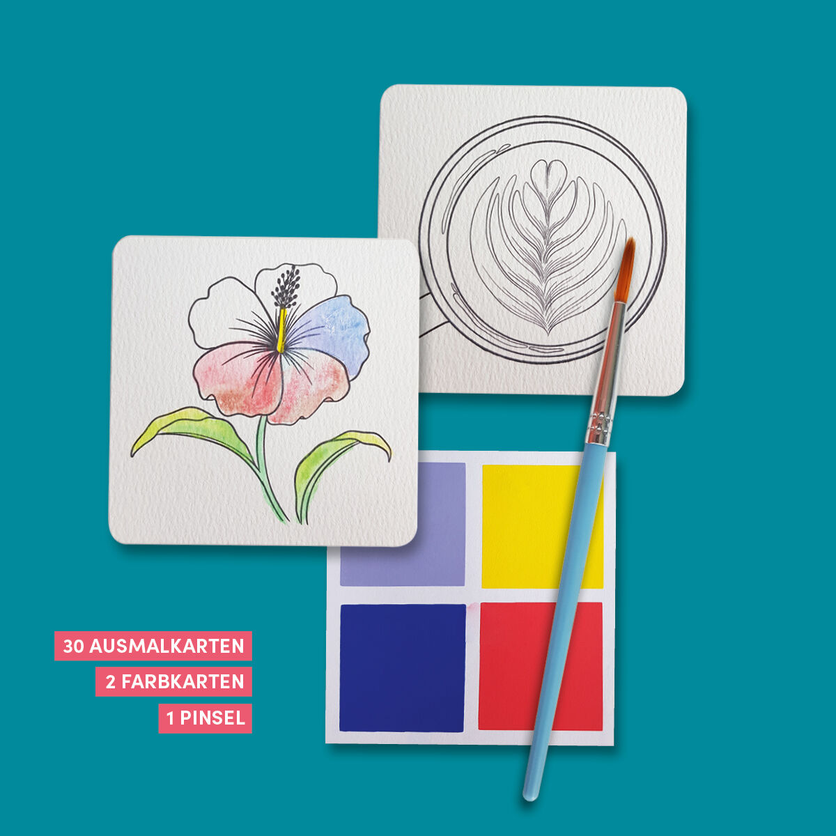 Aquarellkunst to go - entdecke die farbenfrohen Kreativkarten Watercolor! Diese handliche Kreativbox enthält alles, was du brauchst, um sofort loszulegen: 30 wunderschöne Ausmalkarten, zwei Watercolor-Farbkarten, einen Pinsel sowie ein Anleitungsheft mit Tipp...