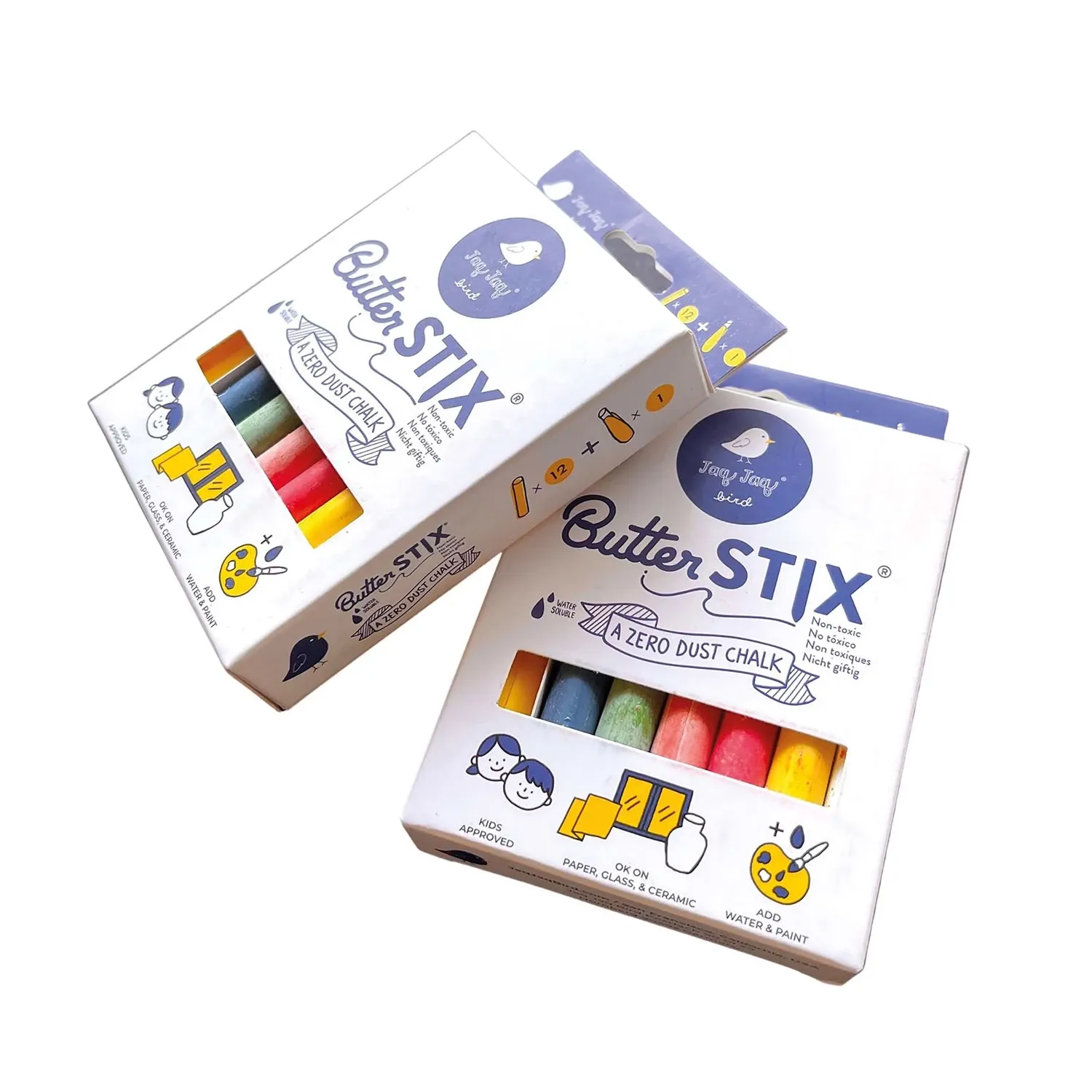 Butterstix® sind handgefertigte Kreiden, die wie Pastellstifte butterweich über fast alle Oberflächen gleiten und dabei weder stauben noch verschmieren. Die Kunstwerke können anschließend mit einem feuchten Tuch entfernt werden. 100% sicher für Kinder. Die ide...