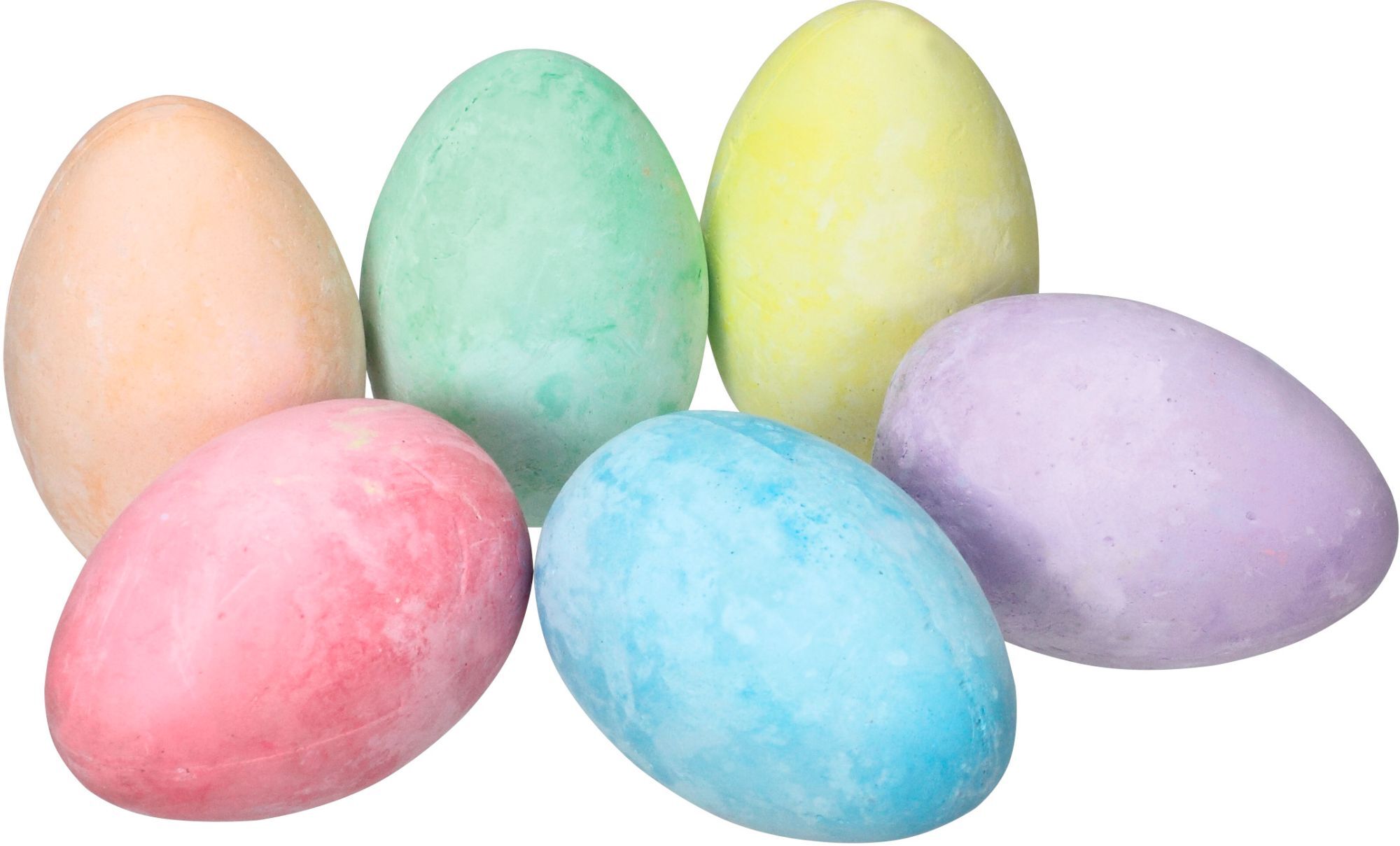 Outdoor Straßenmalkreide in Eiform und in praktischer Eierverpackung. Höhe ca. 6,5 cm, Durchmesser ca. 4,5 cm in sechs verschiedenen Farben.