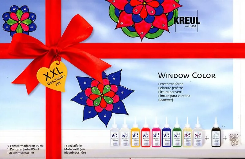 KREUL Window Color Set XXL Kreative schwelgen in den leuchtenden Farben des KREUL Window Color Set XXL mit zarten Blüten- und Mandalamotiven. Das Komplettset von KREUL Window Color ist ideal für alle kleinen und großen Kreativen, die sofort loslegen wollen. De...