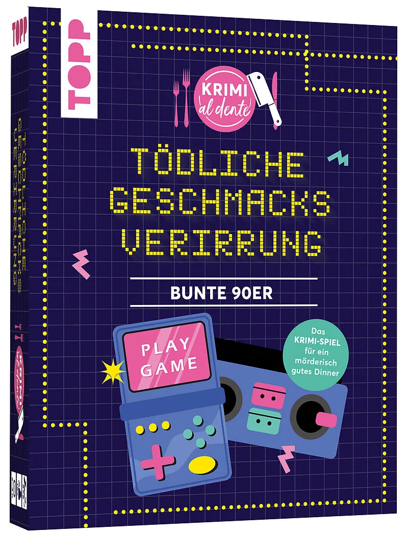 Die Zutaten für ein mörderisch gutes Krimi-Spiel! Dich und deine Gäste erwartet ein spannender, unterhaltsamer und mörderischer Abend, der ganz im Zeichen der schrillen und bunten 90er-Jahre steht. Perfektioniert eure Rollen und macht euch auf brandheiße und ...