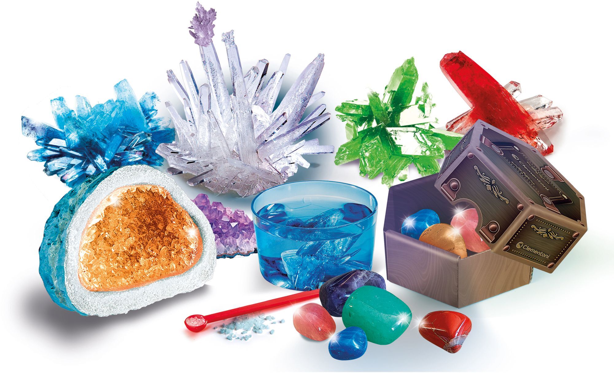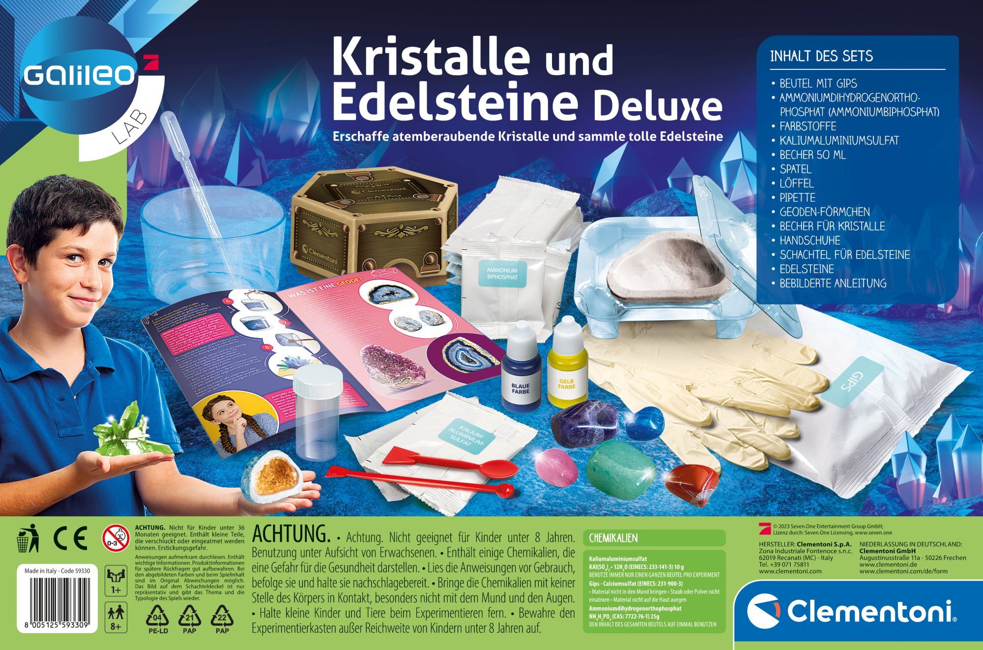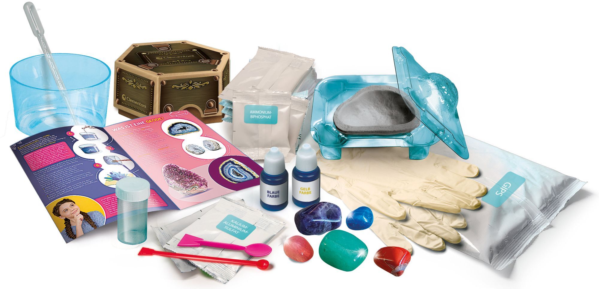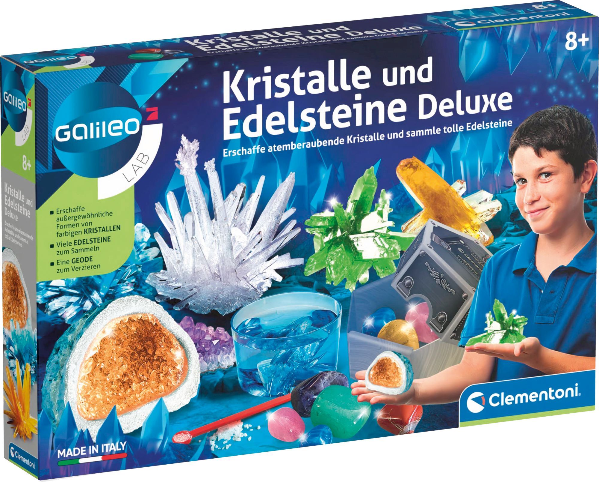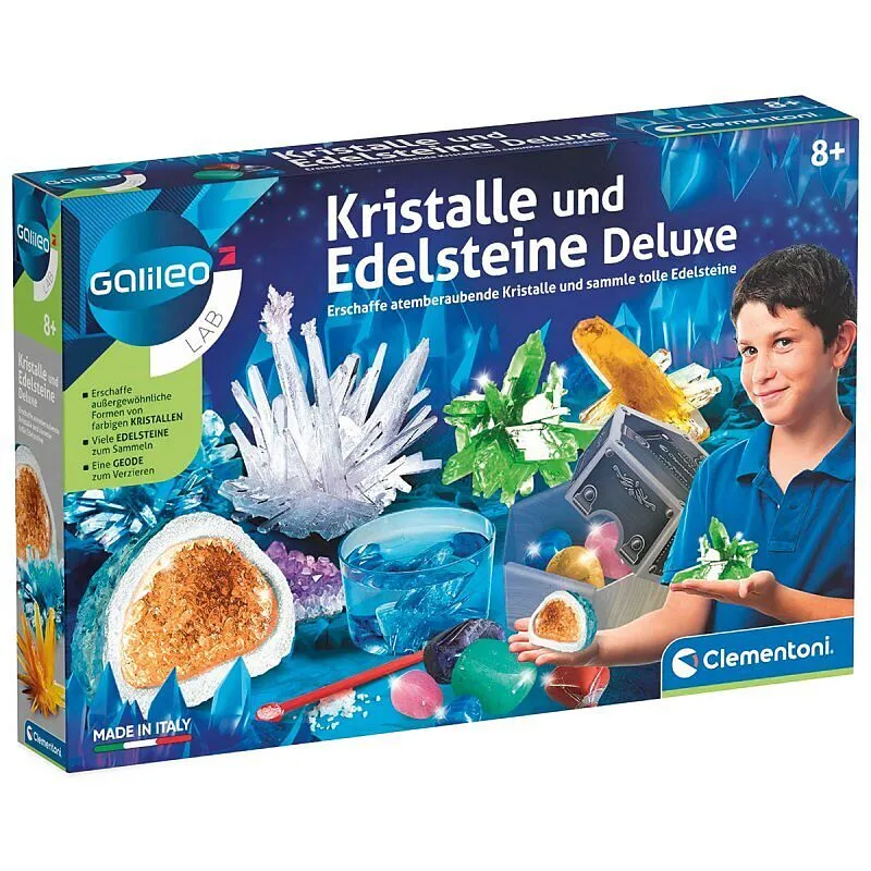 Kristalle und Edelsteine Deluxe. Ein Spiel mit allem, was man braucht, um glitzernde, farbige Riesenkristalle herzustellen! Edelsteine zum Erforschen und Sammeln: der Amethyst, der blaue Achat und viele andere warten darauf, entdeckt zu werden! Das detailliert...