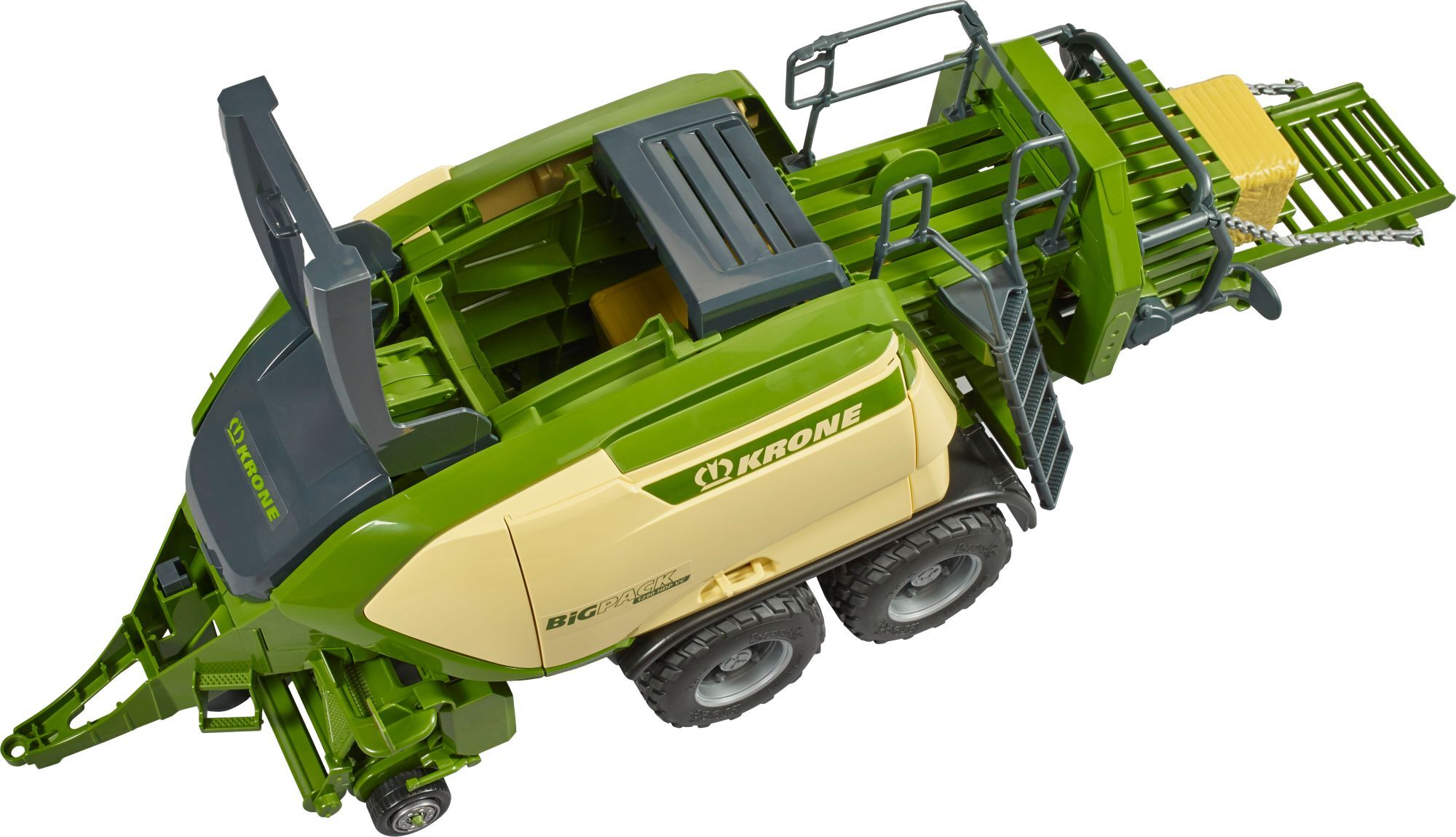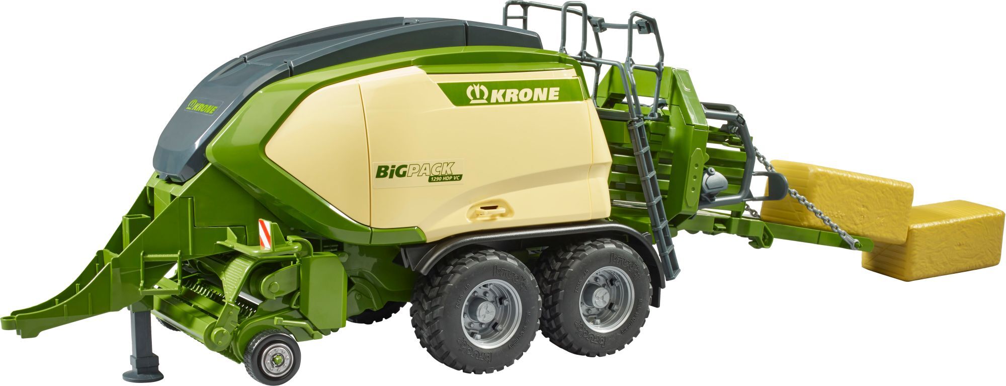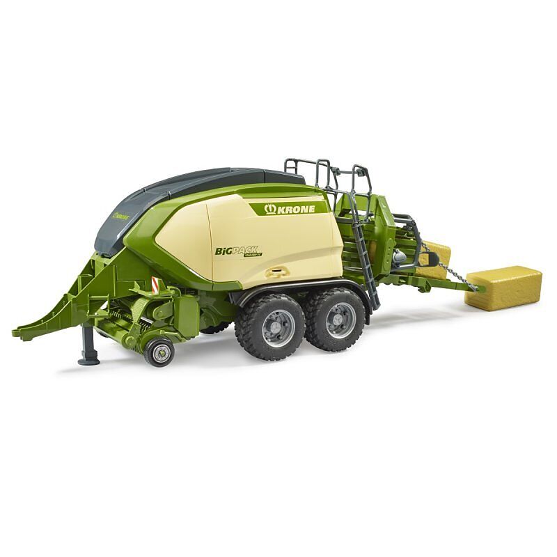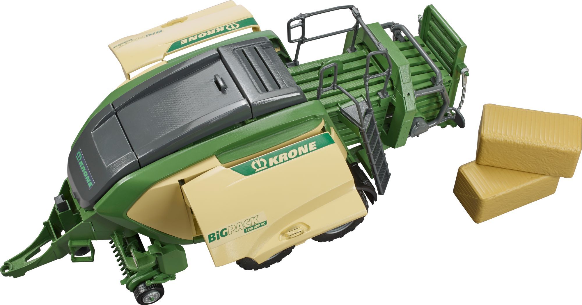 Bruder 02033 Krone Big Pack 1290 HDP VC mit 2 Quaderballen Die Firma Krone ist ein innovativer Hersteller von Erntemaschinen. Mit der neuen Baureihe der BiGPack Großpackenpressen zeigt KRONE einmal mehr, dass auch nach mehr als 25 Jahren die Innovationskraft k...