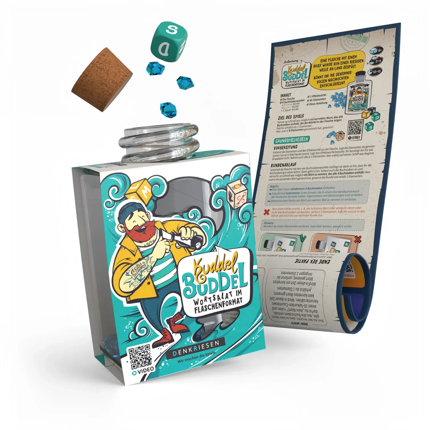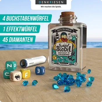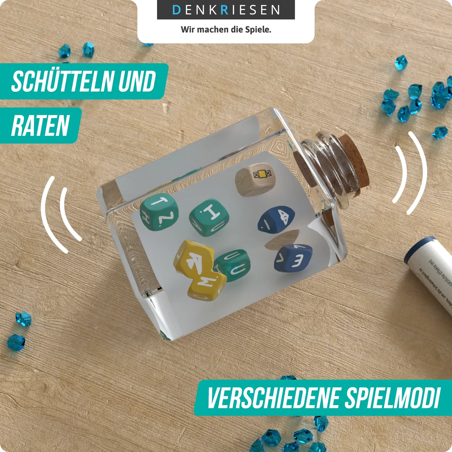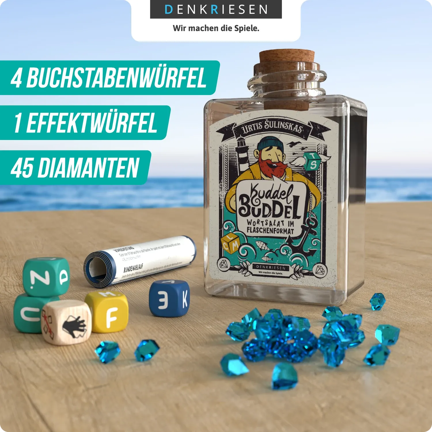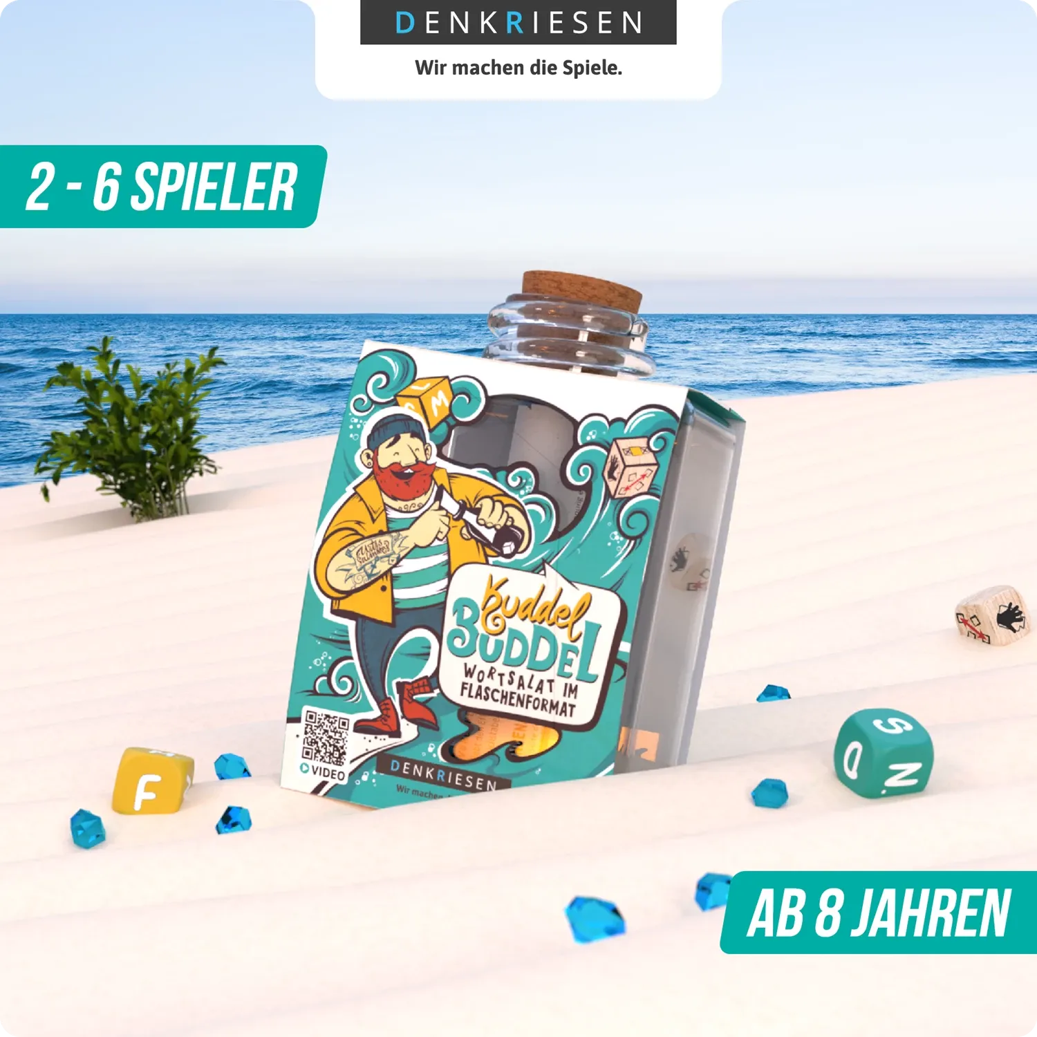 Kuddel Buddel - ''Wortsalat im Flaschenformat'' Eine Flasche mit einem Brief wurde von einer riesigen Welle an Land gespült. Könnt Ihr die Geheimnisvolle Nachrichten entschlüsseln? Schüttelt die Flasche mit den Würfeln. Nennt so schnell wie möglich ein Wort mi...