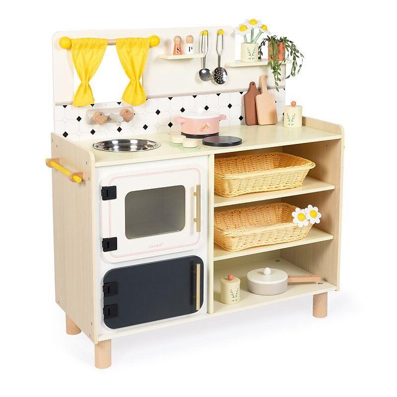 Die Gäste sind da - ab in die Küche! Diese große Küche hat alles, was man braucht, um ein gutes Abendessen zuzubereiten: 1 Pfanne und 1 Topf mit Deckel, 1 Schöpfkelle, 1 Schaumlöffel, 2 Schneidebretter, 1 Salzstreuer, 1 Pfefferstreuer, 2 Gewürzdosen, 1 Vase mi...