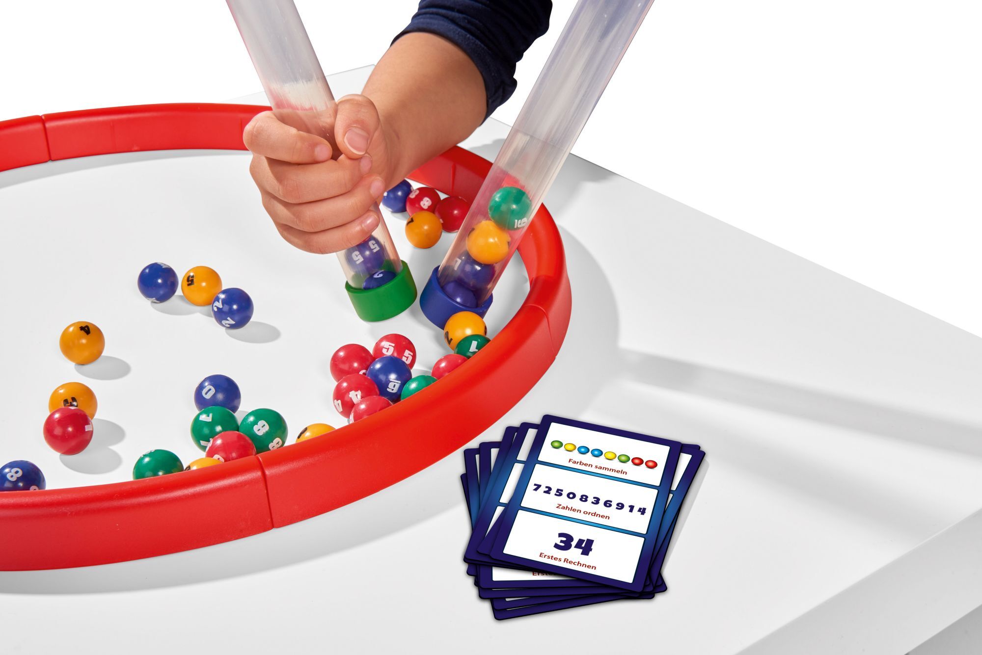 Kugelblitz Jede Menge Action gibt es bei dem Spiel ''Kugelblitz''! Beim rasanten Kugel-Wettbewerb versuchen die Spieler mit einer Röhre Murmeln in einer bestimmten Reihenfolge einzusammeln. Die Kugeln haben verschieden Farben und Nummern aufgedruckt, Spielkart...